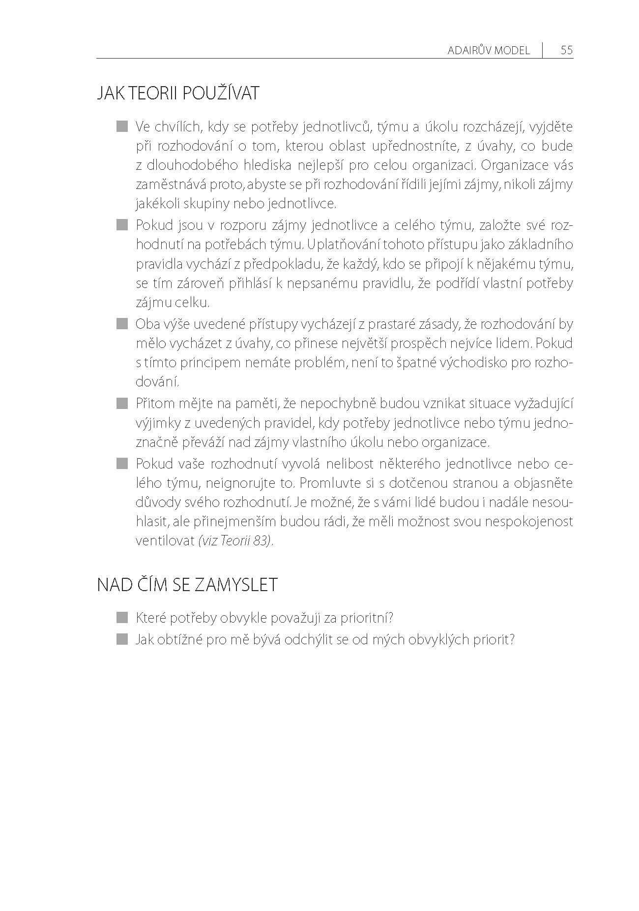 Do knihy byly zařazeny výhradně teorie, jejichž hodnota byla mnohokrát prověřena praxí. Když si předkládaný výběr pročtete, pochopíte hlavní myšlenky, zamyslíte se nad možnou aplikací a zkusíte vybrané teorie uvést do praxe, budete schopni obstát v podstatě v jakékoli diskusi na téma „management a teorie“.