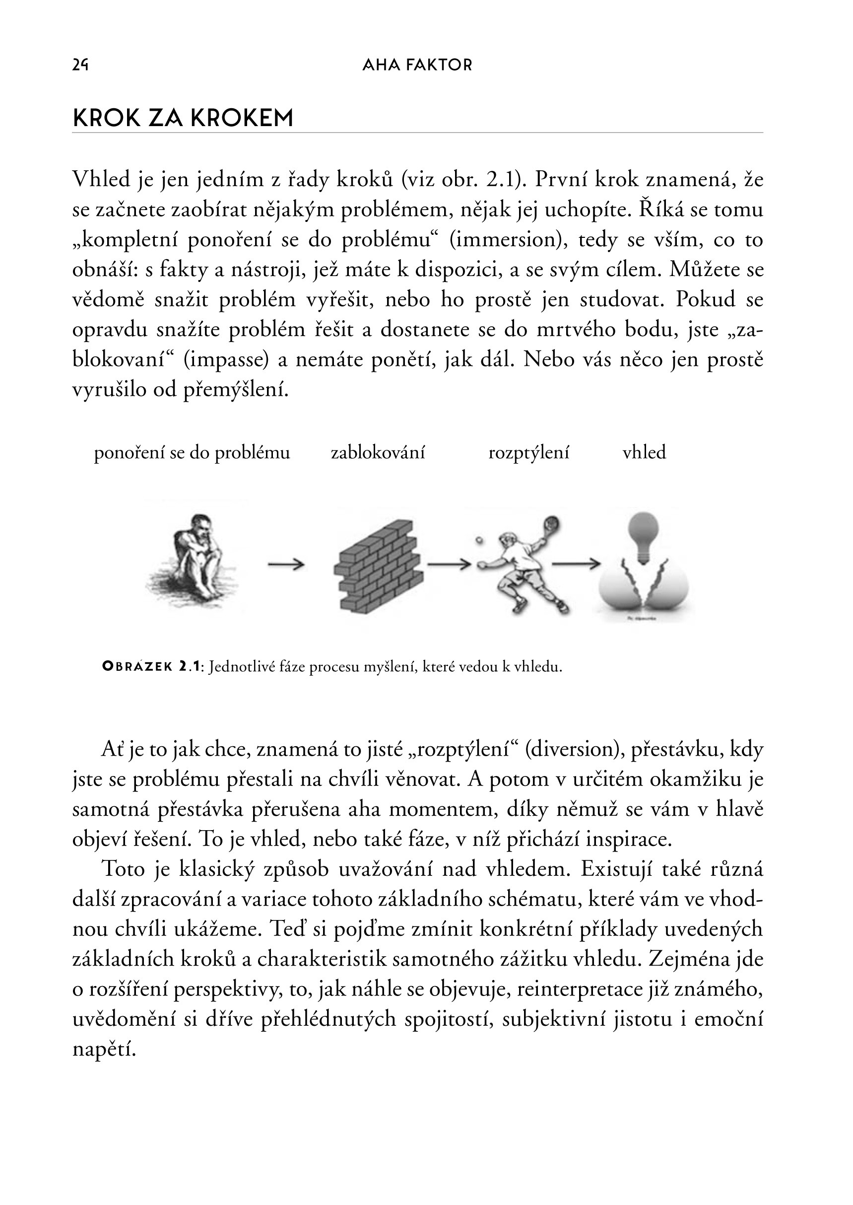 Kniha Aha faktor nabízí fascinující pohled na lidský mozek a jeho zdánlivě nekonečné možnosti, jak nás neustále překvapovat. Dozvíte se v ní, kde se bere vhled a co říká věda o možnostech jeho stimulace. Poutavý styl vás přenese až za hranice vědeckých principů a nabídne vám metody, jak využít vlastní kreativní potenciál doma i v zaměstnání. Na spoustě názorných příběhů z historie i současnosti ilustrují autoři jedinečnost tohoto fenoménu. Přijměte pozvání na slavnostní večeři s Kryštofem Kolumbem, baseballový zápas s režisérem filmových hitů studia Disney Pixar, výpravu do snů sira Paula McCartneyho či nahlédnutí do zákulisí koncertu Elvise Presleyho a odhalte, jak mocné a pro život přínosné mohou tyto aha momenty být.