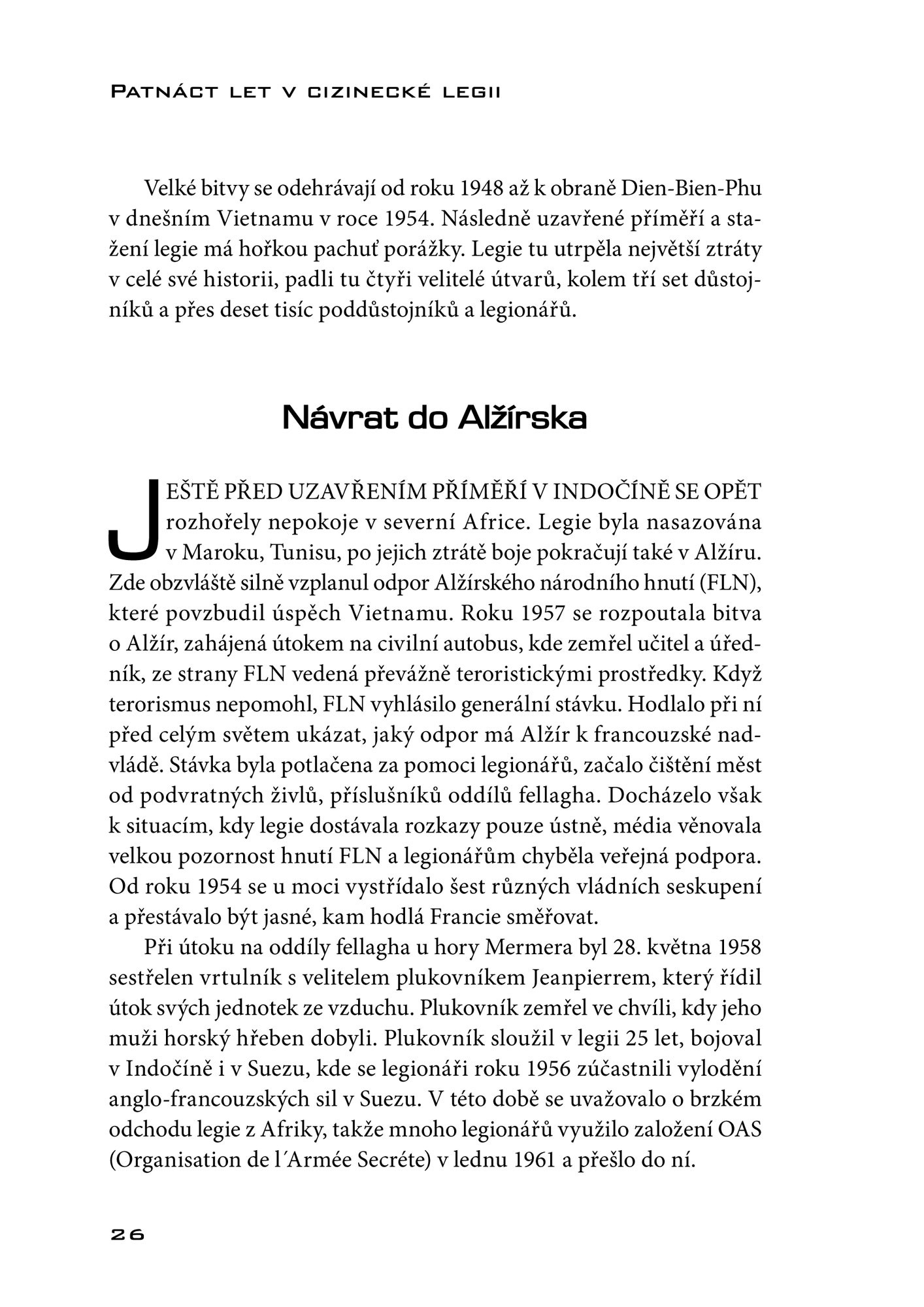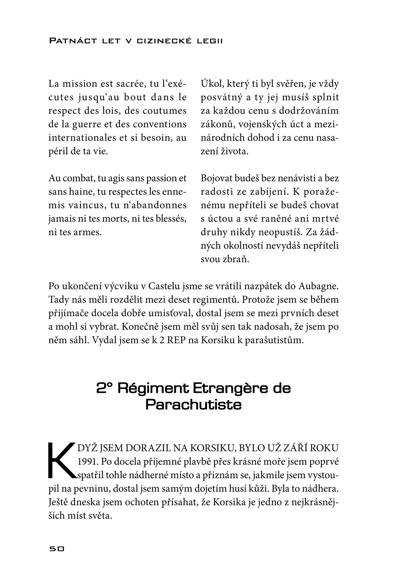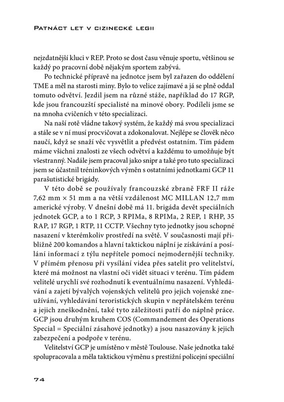 V roce 1991 se Stanislav Gazdik rozhodl vypravit do Francie a vstoupit do cizinecké legie, ve které následně prožil patnáct let života. Podařilo se mu dostat do speciální jednotky GCP a dosáhnout hodnosti le sergent chef. Když se po letech vrátil, rozhodl se ve své knize vyprávět svůj příběh. Vylíčil své zážitky a zkušenosti, od náborového střediska přes tvrdý výcvik až po nasazení v jednotlivých akcích. Umožňuje tak nahlédnout výjimečným způsobem do každodenního života ve francouzské cizinecké legii a poznat i rozmanité akce, kterých se zúčastnil v různých koutech světa. V knize nechybí ani širší seznámení s historií a kořeny cizinecké legie.