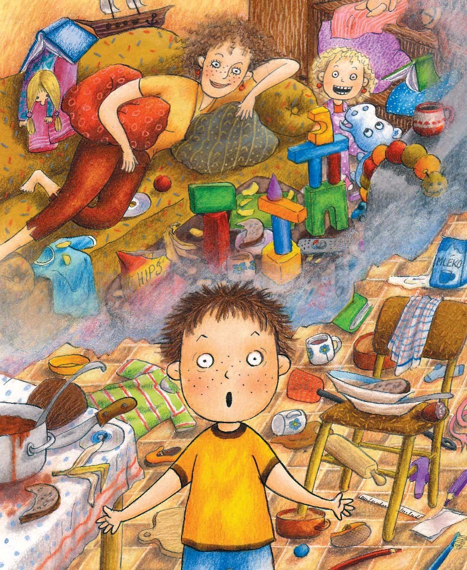 mýt se a nezapomenout na další protivné věci. A tak když má za úkol napsat vyprávění o své rodině, náležitě si na všechny zákazy a příkazy postěžuje.