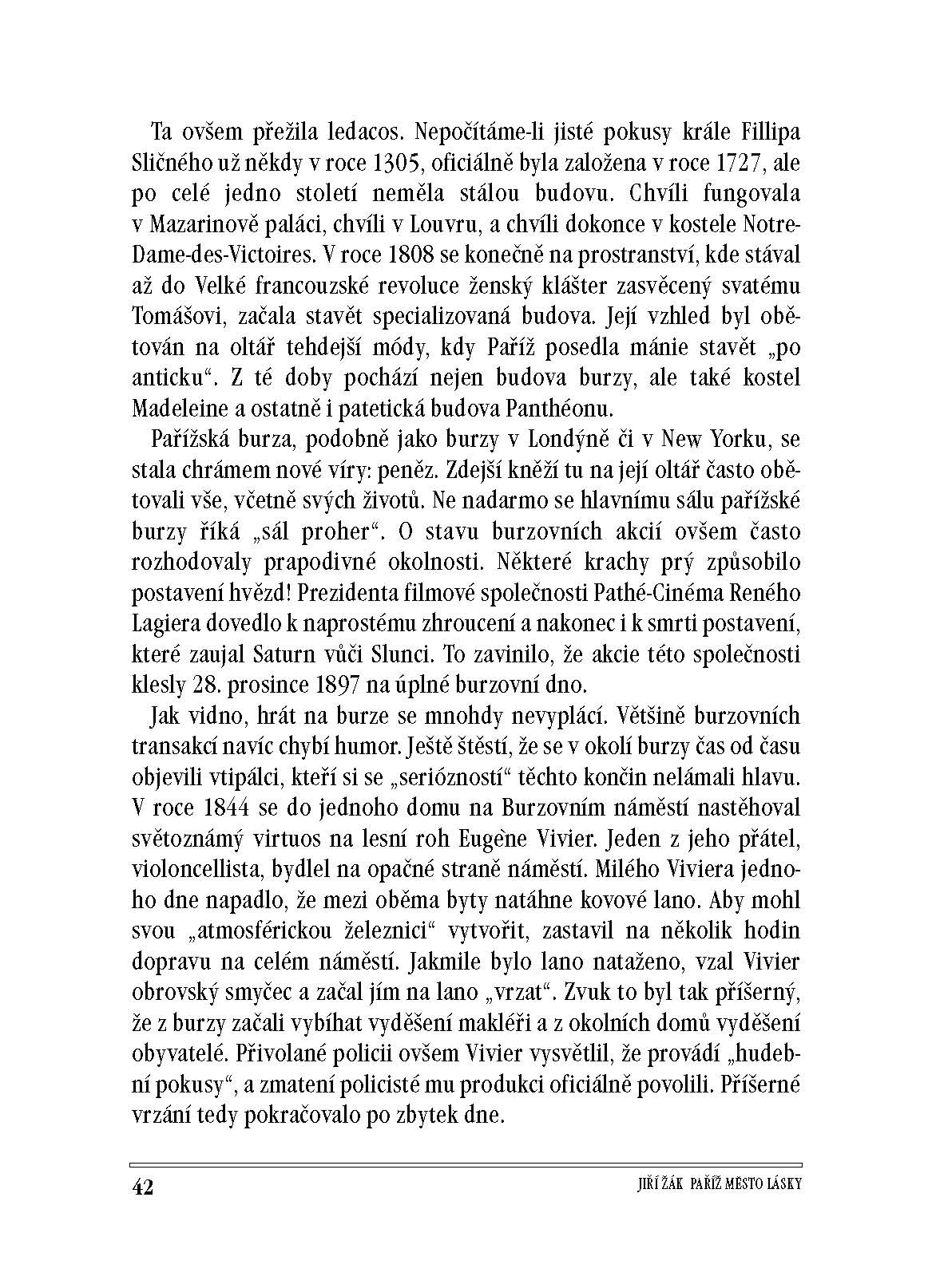 Jiří Žák je herec, spisovateľ, prekladateľ z francúzskeho jazyka, ale aj scenárista či publicista. Má na konte už množstvo kníh, pričom viaceré sú práve o Paríži, no najnovšia Paříž město lásky, ktorá vyšla na sklonku minulého roka, je rozsahom najobsiahlejšia a vskutku výnimočná. Určite ju nemožno považovať za klasický bedeker či za bedeker vôbec – veď už samotný autor knihy bedekre považuje za povrchných sprievodcov mestom a poukazuje na tie skvostné, patriace do beletrie, ktoré vám o meste prezradia viac –, ale zato vás na Paríž navnadí ako nik iný. Táto kniha totižto dýcha históriou a vy po prečítaní budete vedieť o Paríži toľko, že budete chcieť okamžite vyraziť a navštíviť všetky miesta, o ktorých ste si prečítali tie najzaujímavejšie príbehy v knihe Jiřího Žáka.