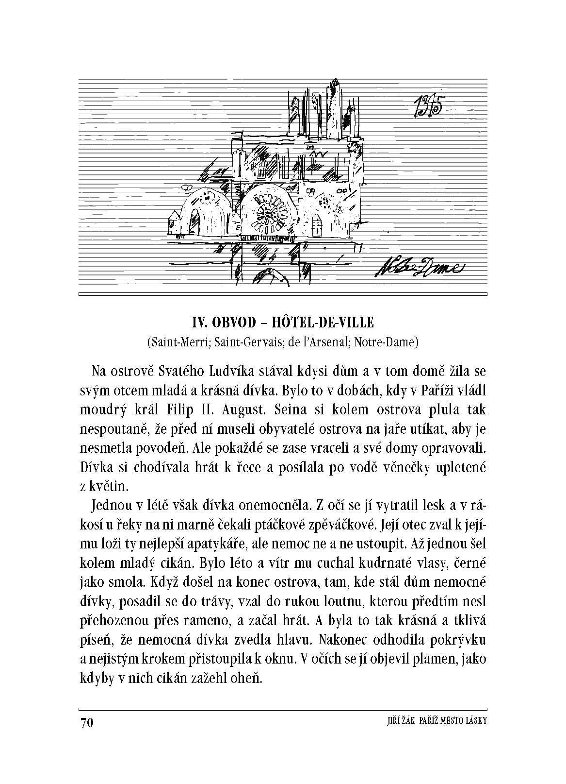 Knižka je rozdelená na dvadsať kapitol, pričom každá z nich predstavuje jeden obvod. Text je oživený jednoduchými skicami Rostislava Pospíšila. Jednoduché ilustrácie nielenže zobrazujú históriu, ale historicky aj pôsobia, čo ma príjemne prekvapilo. Určite ste videli film Amélia z Montmartru, vedeli ste však, že „vesnice Montmartre po dlouhá léta nepatřila k Paříži a připadla k hlavnímu městu ve stejném roce jako Savojsko“? Kniha Jiřího Žáka je plná veľmi zaujímavých faktov a neviem si ani predstaviť, koľko práce si s ňou autor dal a koľko literatúry si k tomu načítal. Už len zbieranie všetkých informácií muselo zabrať veľa času, no na texte vidieť, že ho Žák písal so zanietením, pretože Paríž miluje. Pri čítaní budete mať pocit, že odkrývate tajomstvá zákutí mesta, že prežívate príbehy rôznych historických postáv, že ste zrazu kazateľ v 20. storočí, že každá stránka je prekvapením, že Paríž je priam na dosah vašej ruky…