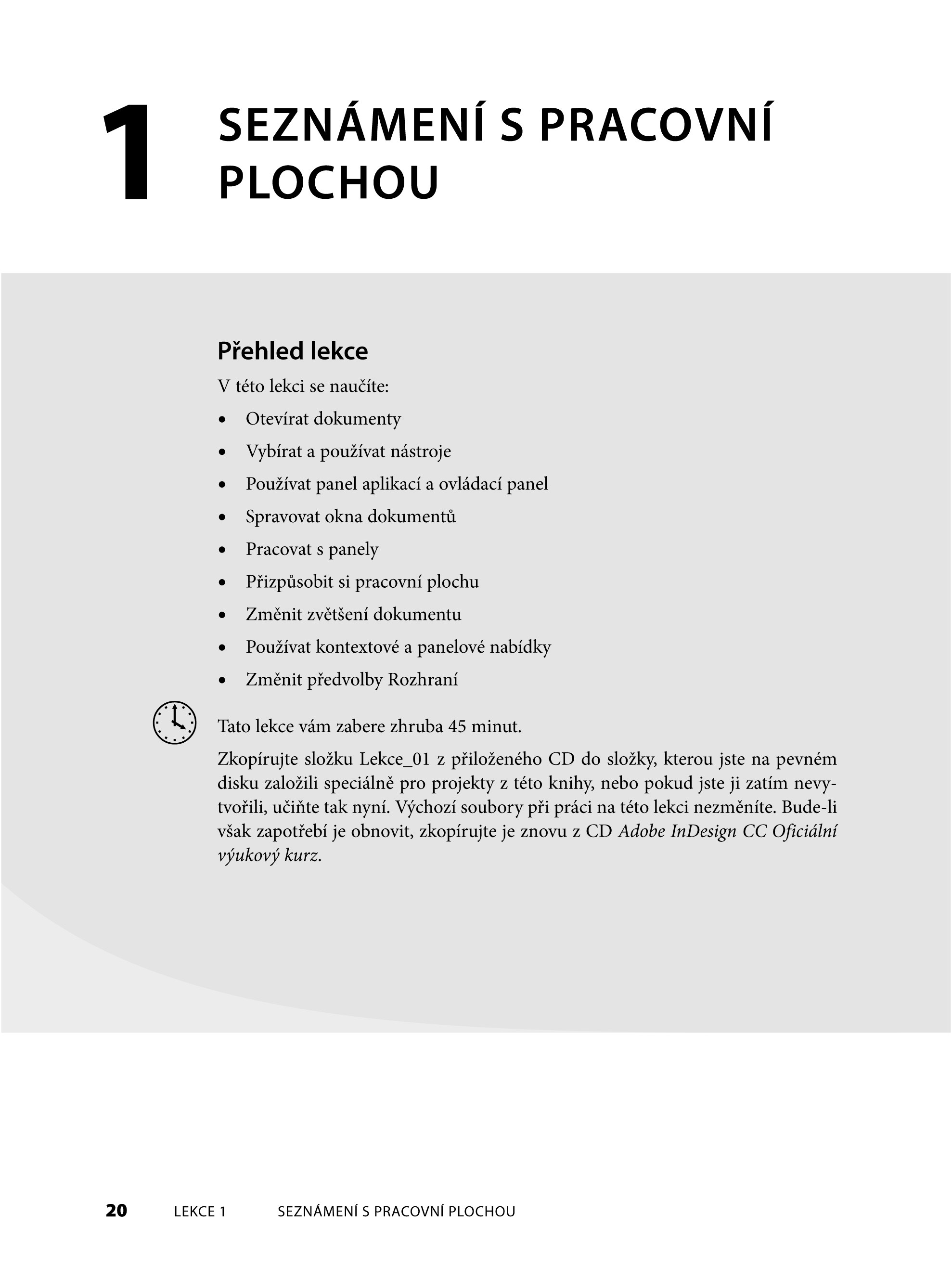 Oficiální výukový kurz pro Adobe InDesign CC obsahuje 16 lekcí, v nichž se sami krok za krokem naučíte vše od tvorby layoutu dokumentu a natékání textu až po tisk pokročilých přechodů s průhledností či synchronizaci barevných profilů. Kniha na praktických příkladech ilustruje využití všech nových funkcí a poskytuje množství tipů a technik, díky nimž budete ve své práci s InDesignem produktivnější. V jednotlivých lekcích budete vytvářet skutečné projekty, díky nimž své vědomosti a znalosti postupně zdokonalíte.