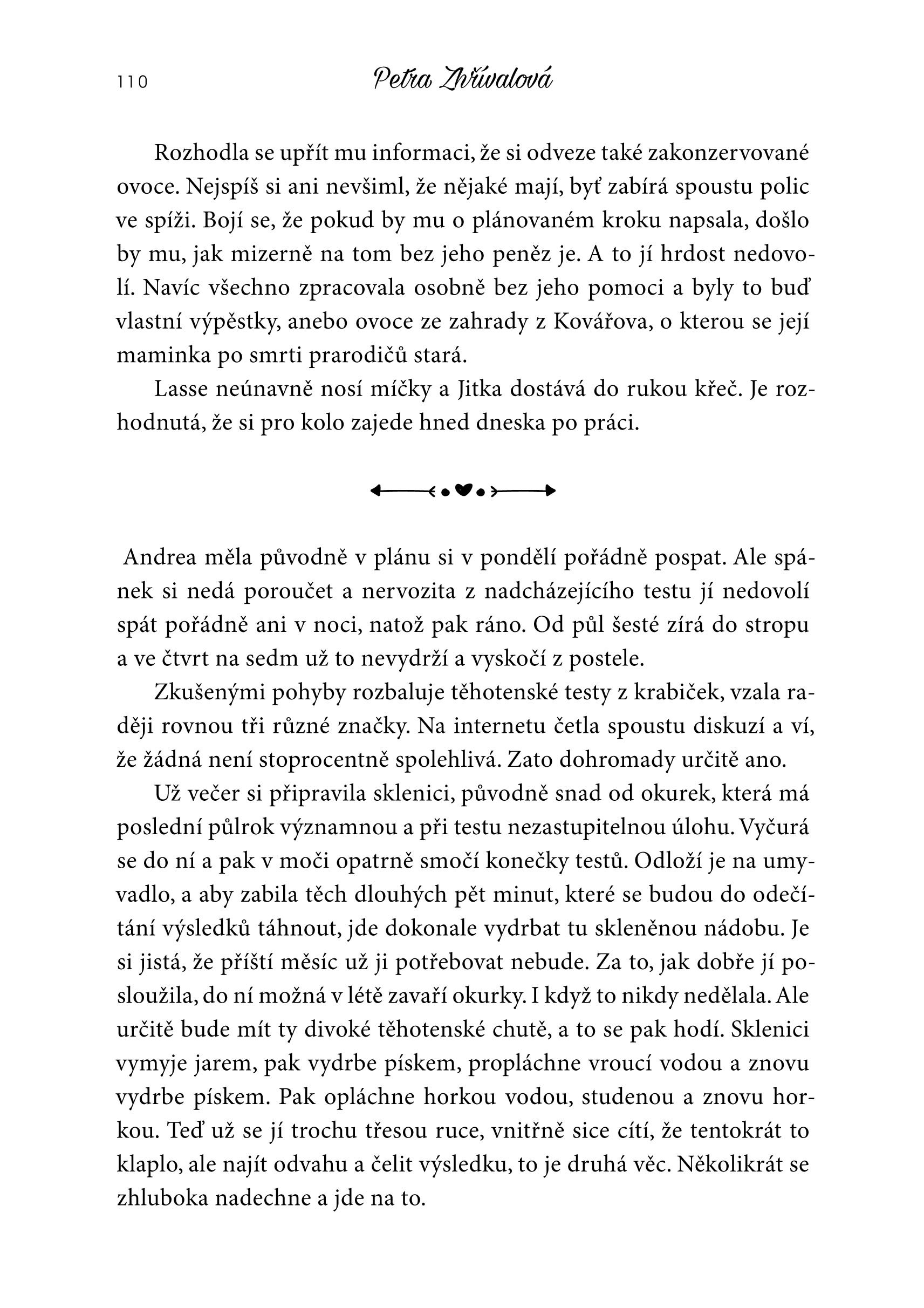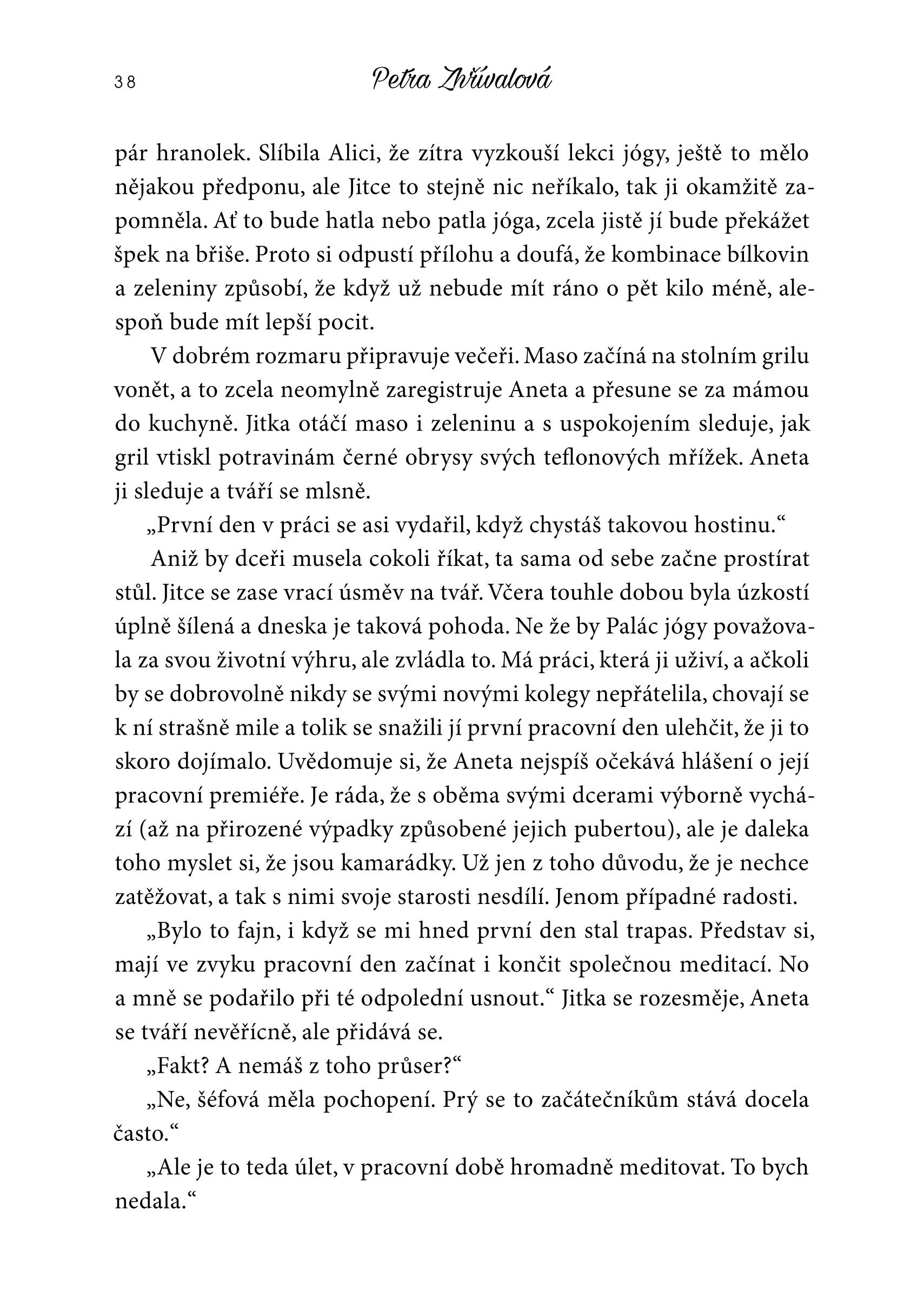 PETRA ZHŘÍVALOVÁ se narodila v roce 1972. O téměř dvě desetiletí později z nedostatku fantazie nastoupila po gymnáziu na pražskou právnickou fakultu. Studia ji příjemně překvapila zejména po společenské stránce a stále na ně ráda vzpomíná, jak lze vyčíst z její prvotiny Sex, víno a cigarety (XYZ, 2011). Ani po absolvování práv si nebyla jistá, čím chce být, až bude velká, proto pokračovala v postgraduálním studiu Veřejné a sociální politiky na Fakultě sociálních věd. Věnovala se vědecké činnost, ale „pod lavicí“ psala scénáře k nekonečným seriálům. Rozhřešení v oblasti profese jí nepřinesl ani doktorský titul, a tak v současné době dělí svůj čas mezi kriminologii, psaní a právo. Miluje červené víno, kávu a psy. Usiluje o to, aby svět byl lepším místem, a proto mu prostřednictvím svých knih dodává porce romantiky a optimistického nadhledu (Šťastní & veselé, XYZ 2015). Stejně jako hrdinové její poslední knížky O fous líp přijímá do života zázraky a to samé doporučuje i čtenářům.