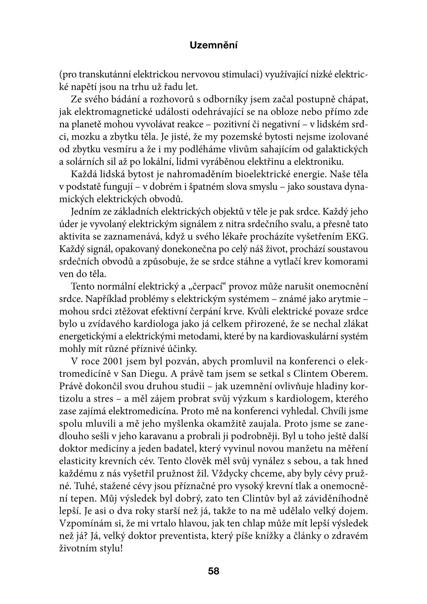 ŽPoznejte objev, jehož závěry nám doporučují žít více v kontaktu se Zemí, využívat jejího přírodního povrchového náboje a pomocí jednoduchých pomůcek a způsobů, třeba jen chůzí naboso, se Země dotýkat – uzemňovat se. Tento snadný proces zabraňuje tvorbě chronických zánětů v těle a následně rozvoji civilizačních onemocnění, poruch spánku, alergií, hormonálních výkyvů, kloubních potíží, orgánového postižení a dalších chronických problémů.