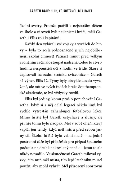 Velšská superhvězda. Vyniká svou rychlostí a umí dávat góly z trestných kopů. A v současnosti nosí bílý dres. Přečtěte si, jak se k němu Gareth Bale propracoval, co všechno mu stálo v cestě a co musel překonat. Uvidíte, že neměl ušlapanou cestičku, že nestačilo jenom kopat do míče jako na dvorcích ve velšském Cardiffu. Sledujte ho od jeho prvního gólu až po ten první za Galácticos.