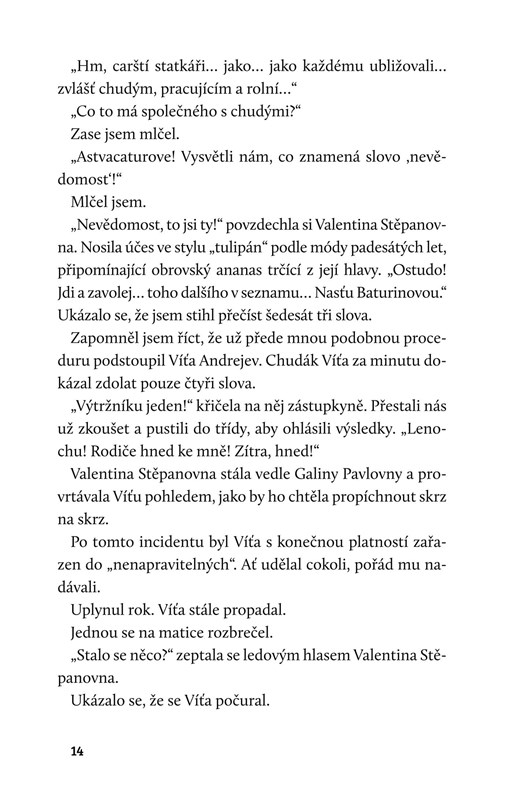 Děj se odehrává především v 90. letech 20. století, v ,,nejkulturnějším“ městě Ruska, v Petrohradě. Vypravěč ve svých vzpomínkách znovu prožívá zážitky ze školy a undergroundových shromáždění, není to ale jen slepá a sladká nostalgie, Astvacaturov dokáže být zpětně hodně kritický a kousavý.