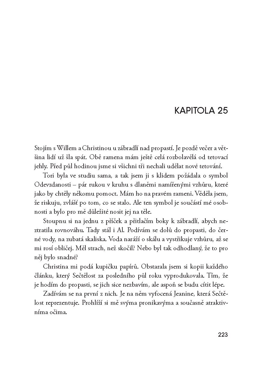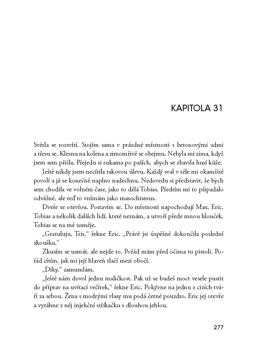 Chicago, budoucnost. Obyvatelé města, které obklopuje jen močál a obepíná ostnatý drát, jsou rozděleni do pěti frakcí. Beatrice je čerstvých šestnáct a přišel čas vybrat, do které frakce chce patřit, které ctnosti se chce na celý život odevzdat. Překvapivé rozhodnutí jí do cesty přivede osudového kluka – úchvatného, ale taky trochu nesnesitelného. Beatrice zjišťuje, že ve společnosti, která se jeví tak dokonalá, vzrůstá napětí a hrozící nebezpečí lze zažehnat jen jedním způsobem, který ji ale možná zničí.