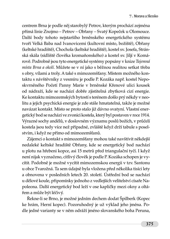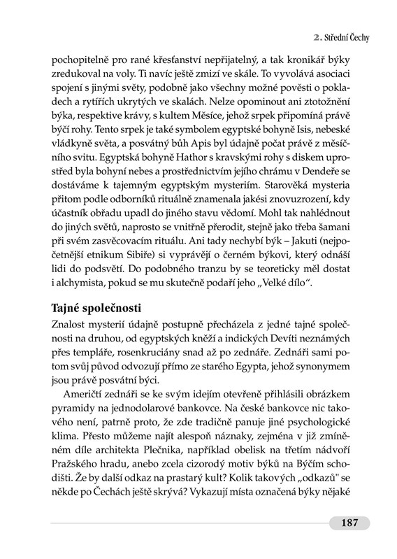 Naše země se sice nepyšní tak proslulými záhadnými památkami jako jsou britský Stonehenge nebo peruánské Machu Picchu, ale přesto lze v Čechách a na Moravě najít řadu míst, která mají svá tajemství, připomínající nejhlubší minulost daného kraje. Řada z nich je spojena už s pohanskou a ranou křesťanskou dobou, které na sebe vážou nejrůznější pověsti a mýty. Věděli jste, že můžete na Vyšehradě potkat Pannu Marii v podobě „krásné paní“? Že se možná v chrámovém pokladu svatovítské katedrály nachází i částečka nejvzácnější relikvie – odstřižek tzv. Turínského plátna? Nebo že si můžete v Dobré Vodě u Hartmanic díky pověsti o uzdravené krávě nabrat vodu z léčivého pramene?