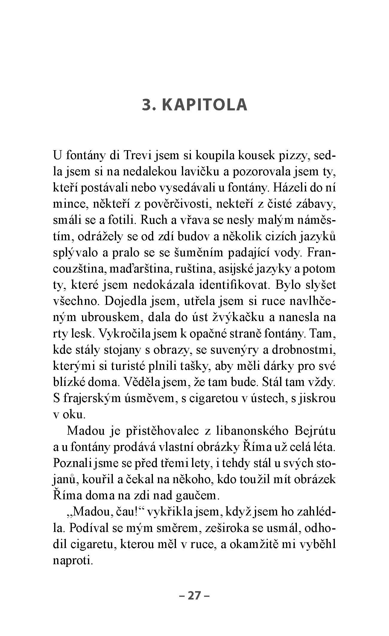 Zamilovaná do Itálie a všeho italského, Eva cestuje několikrát ročně do Říma, aby se nadechla atmosféry okouzlujícího města, načerpala energii a inspiraci. Po rozchodu se snoubencem opouští práci manažerky v bratislavském hotelu, vrací se do rodného města a začíná si plnit svůj sen v podobě obchůdku s italskými potravinami. Opakované návštěvy Říma pro ni znamenají návrat do míst, které miluje a nepřestávají ji okouzlovat svou krásou. Navíc mají i magickou moc zbavovat ji stresu, negativních zážitků a všeho, čeho se zbavit potřebuje. A nemalou zásluhu na tom má také její italský milenec…
