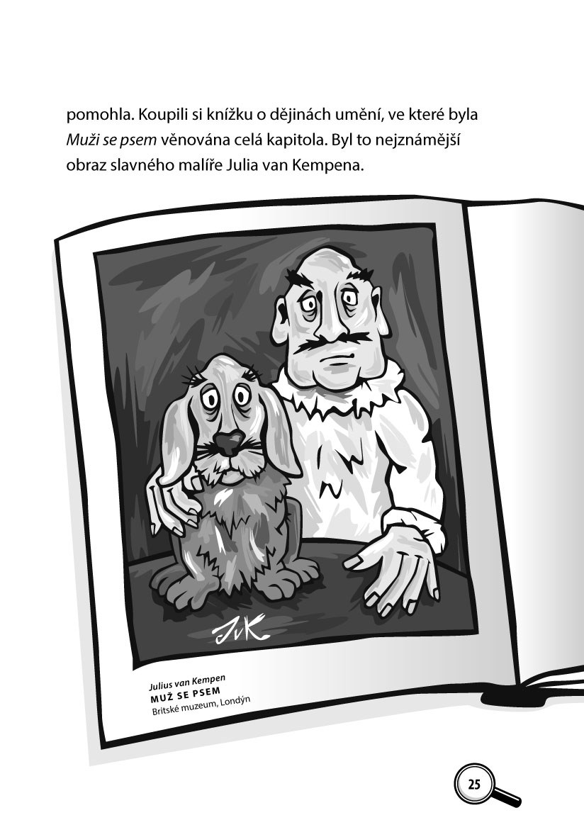 Vše začne tím, že zmizí křeček Kruso. Pátrání vede až do Londýna, kde se děti nachomýtnou k záhadné loupeži slavného obrazu Muž se psem. Otazníků je mnoho: kdo je záhadný Profesor? Spolčil se pachatel se samotnou anglickou královnou? A co je to, k čertu, ta Labernáda?