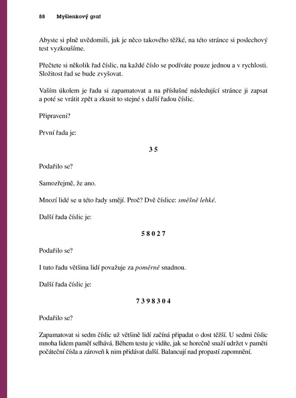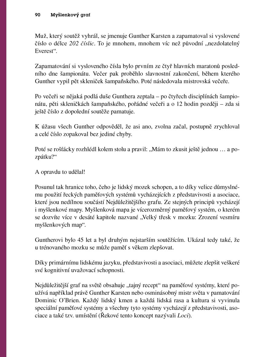Myšlenkový graf, který jeho autor a tvůrce geniálního konceptu myšlenkových map, Tony Buzan, považuje za ten nejdůležitější graf na světě, odkrývá tajemství schopnosti učit se a pamatovat si. Pomocí jednoduchého grafu dokážete neuvěřitelným způsobem zvýšit možnosti svého mozku, dokážete si zapamatovat mnohem víc, než jste si kdy uměli představit a začnete chápat věci v souvislostech, které vám před tím vůbec nepřicházely na mysl.