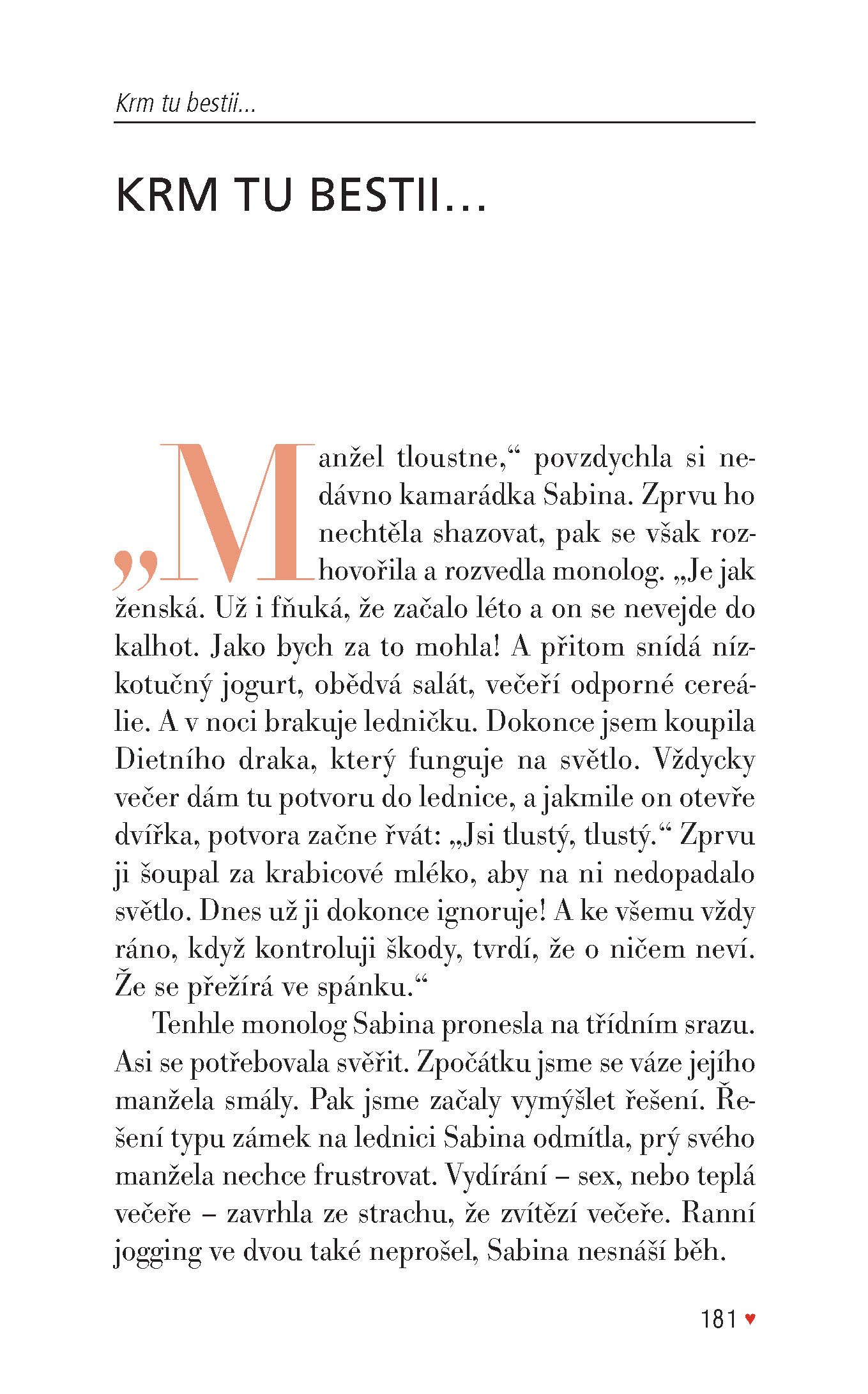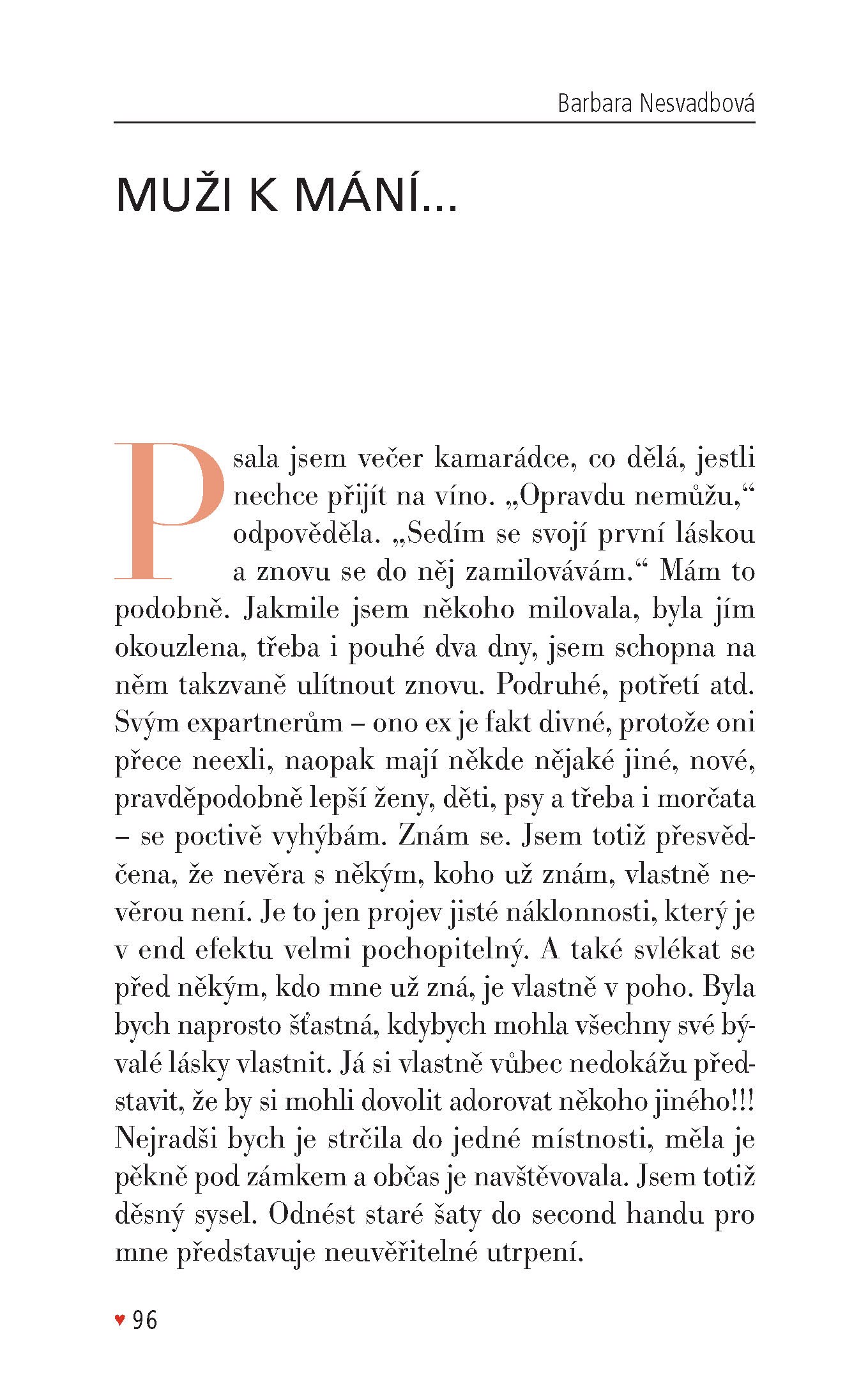 Kniha fejetonů, jejichž tématem jsou většinou muži, soužití s nimi, partnerství, přátelství a rodičovství. Hlavní linií knížky je láska a sexuální přitažlivost, což s nadhledem a vtipem ilustrují kresby Mišo Dúhy.