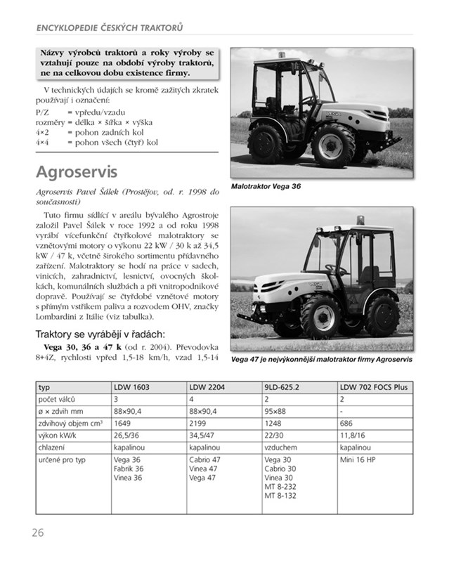 Encyklopedie traktorů popisuje české a slovenské kolové i pásové traktory, lokomobily a motorové pluhy, používané pro mechanizaci polních, lesních, stavebních a dalších prací od přelomu 19. a 20. století až do současnosti.
