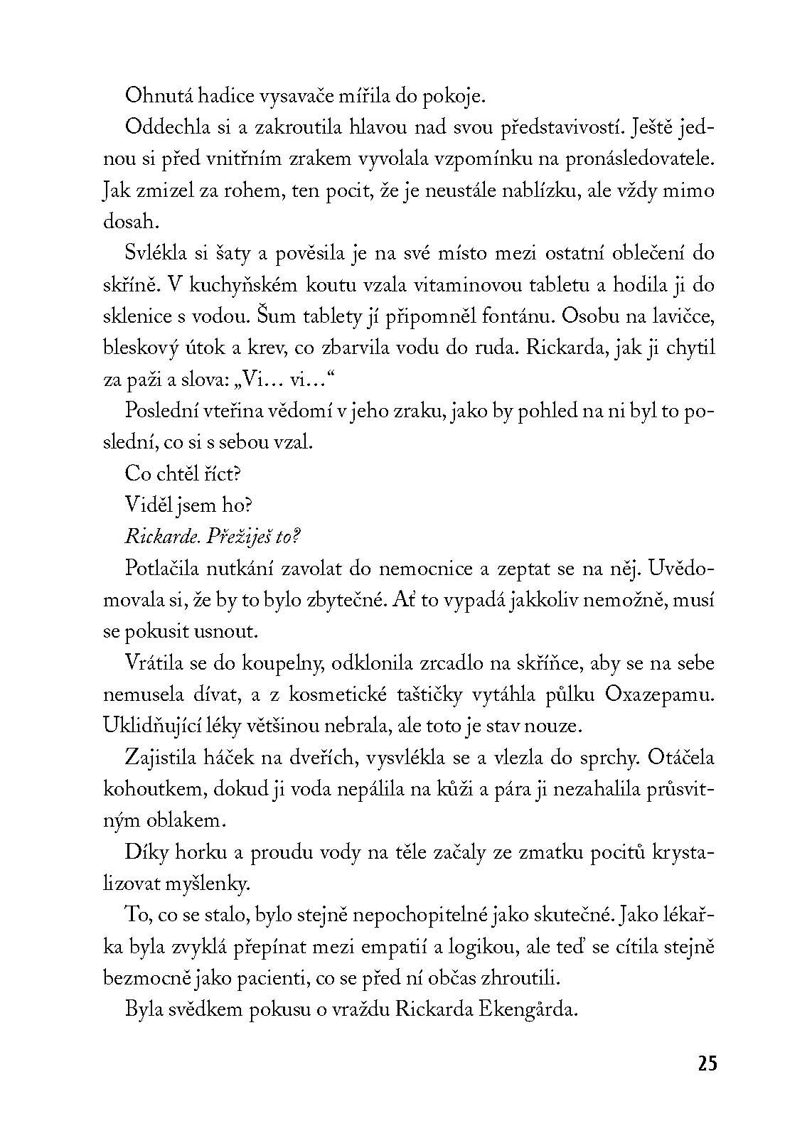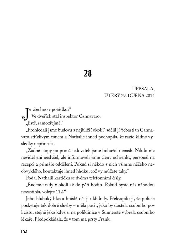 Jednou pozdě večer dostane textovku od známého herce Rickarda Ekengarda, s nímž před několika týdny strávila noc. Rickard ji chce znovu vidět a domluví si schůzku. Ale v momentě, kdy Nathalie přichází na místo setkání, Rickard Ekengard je chladnokrevně zastřelen a jeho tělo vhozeno do fontány.