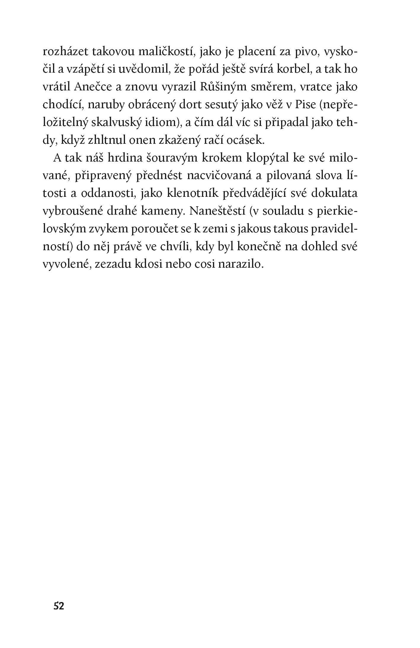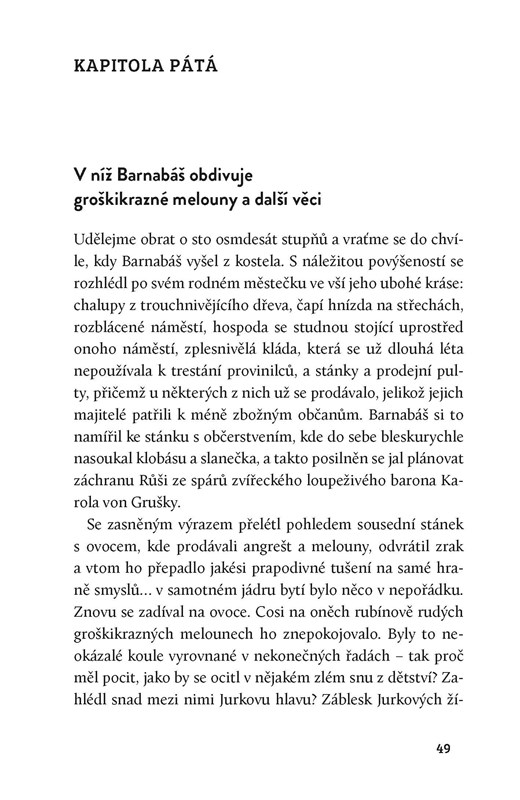 Dobrodružný milostný příběh s výraznými prvky absurdity a černého humoru, zasazený do fiktivní slovanské země Skavulsko, která se ocitá na pokraji historických změn. Debutový román polsko-americké autorky.