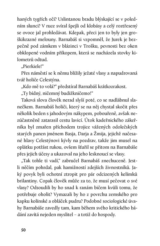 Balada o Barnabáši Pierkielovi vypráví o (ne tak docela) hrdinských činech mladého pasáčka vepřů, který je mylně přesvědčen o své kráse a moudrosti. Jak se Barnabáš zoufale snaží získat přízeň Růši, konkubíny zdejšího obuvnického magnáta, zaplete se i se svým krátkonohým ořem Wilhelmem do řady skandálů a nešťastných příhod a veškeré jeho pokusy o milostné sblížení skončí katastrofou. Po záhadném úmrtí důležité postavy místní komunity vypukne hon na čarodějnice a z nebe se snese tajemná postava. A Barnabáš jen s hrůzou sleduje, jak na jeho milované rodné maloměsto začínají dopadat velké dějiny…