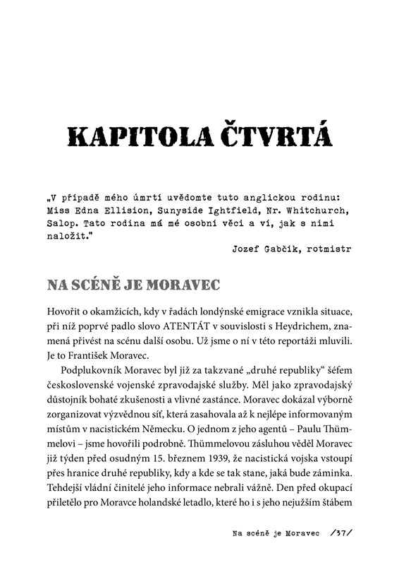 Kniha Konec černého vraha odhaluje dramatický příběh o tom, jak celá tato operace probíhala i kdo byli jeho jednotliví aktéři. Od jmenování Heydricha do funkce v Protektorátu až do posledních bojů v kryptě pravoslavného chrámu sv. Cyrila a Metoděje. Přináší dobové citáty, detaily vyšetřování, osobní příběhy plné odvahy, ale i zrady v jednom z nejdramatičtějších momentů naší historie.