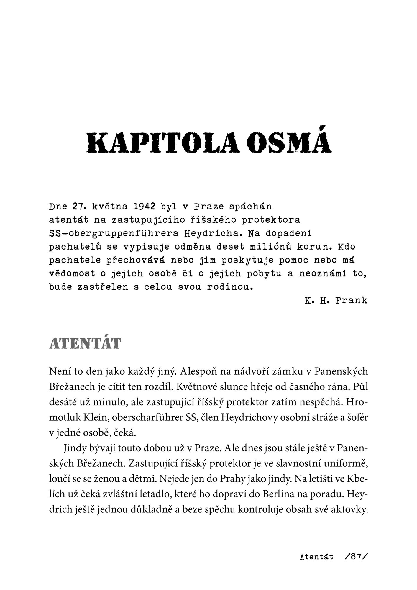 27. května 1942 byl spáchán atentát na zastupujícího říšského protektora Reinharda Heydricha. Tento ojedinělý čin na představitele německých ozbrojených sil v průběhu celé druhé světové války byl vyvrcholením pečlivě naplánované operace Anthropoid, kterou provedli českoslovenští výsadkáři Jozef Gabčík a Jan Kubiš.