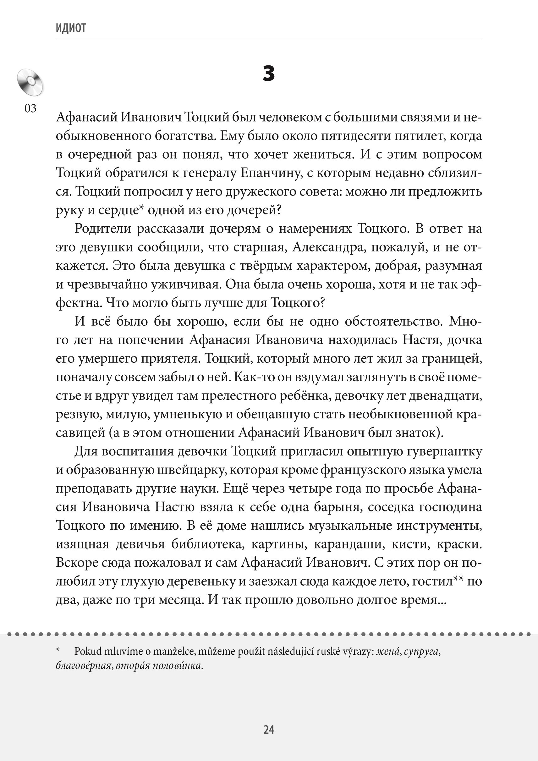 Publikace nabízí zjednodušenou verzi románu, která je určena pro studenty ruštiny mírně pokročilé úrovně (A2-B1 podle SERR pro jazyky). Nejenže se díky ní seznámíte s mistrovským dílem klasické ruské literatury, ale také si procvičíte ruštinu.