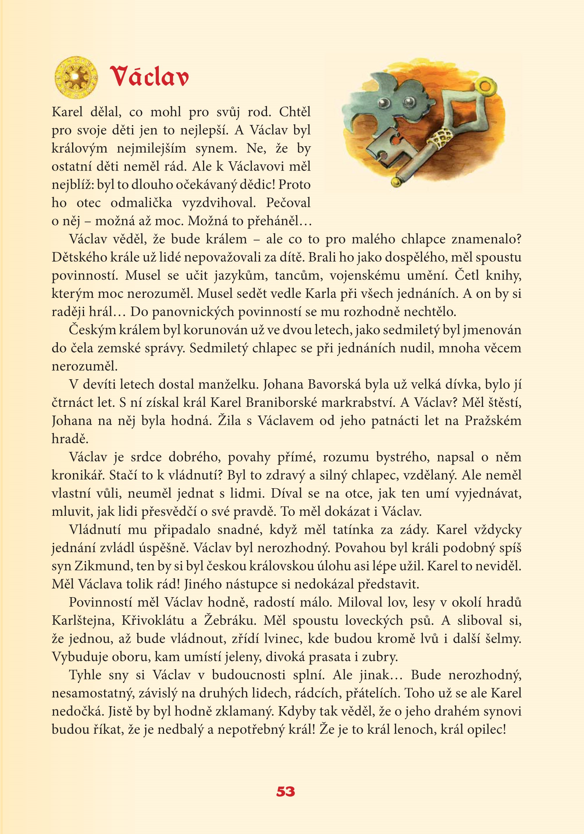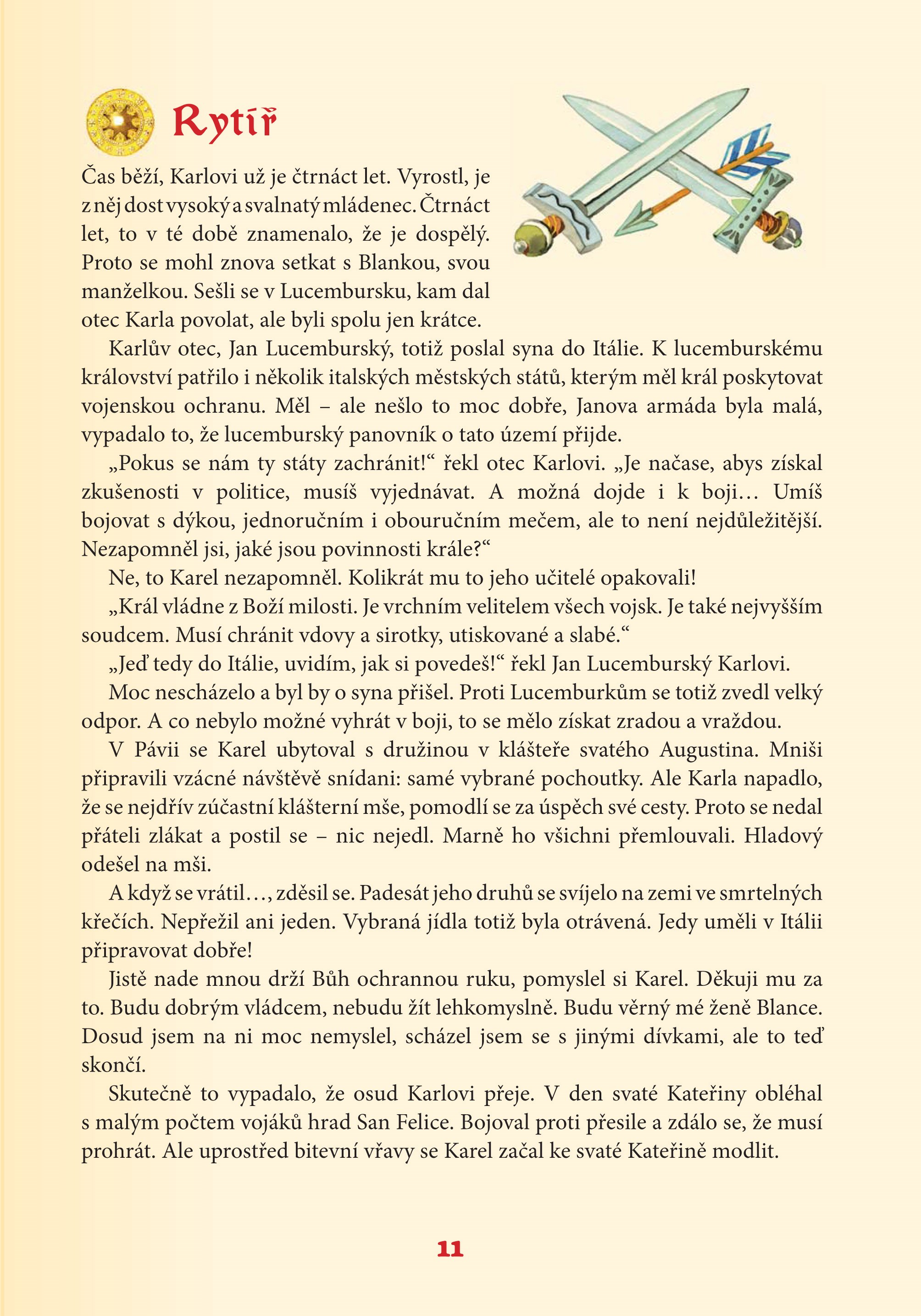 Kniha seznamuje malé i velké čtenáře s osudy našeho nejvýznamnějšího panovníka. Jazyk vyprávění a ilustrace jsou ušity na míru dětem předškolního věku.