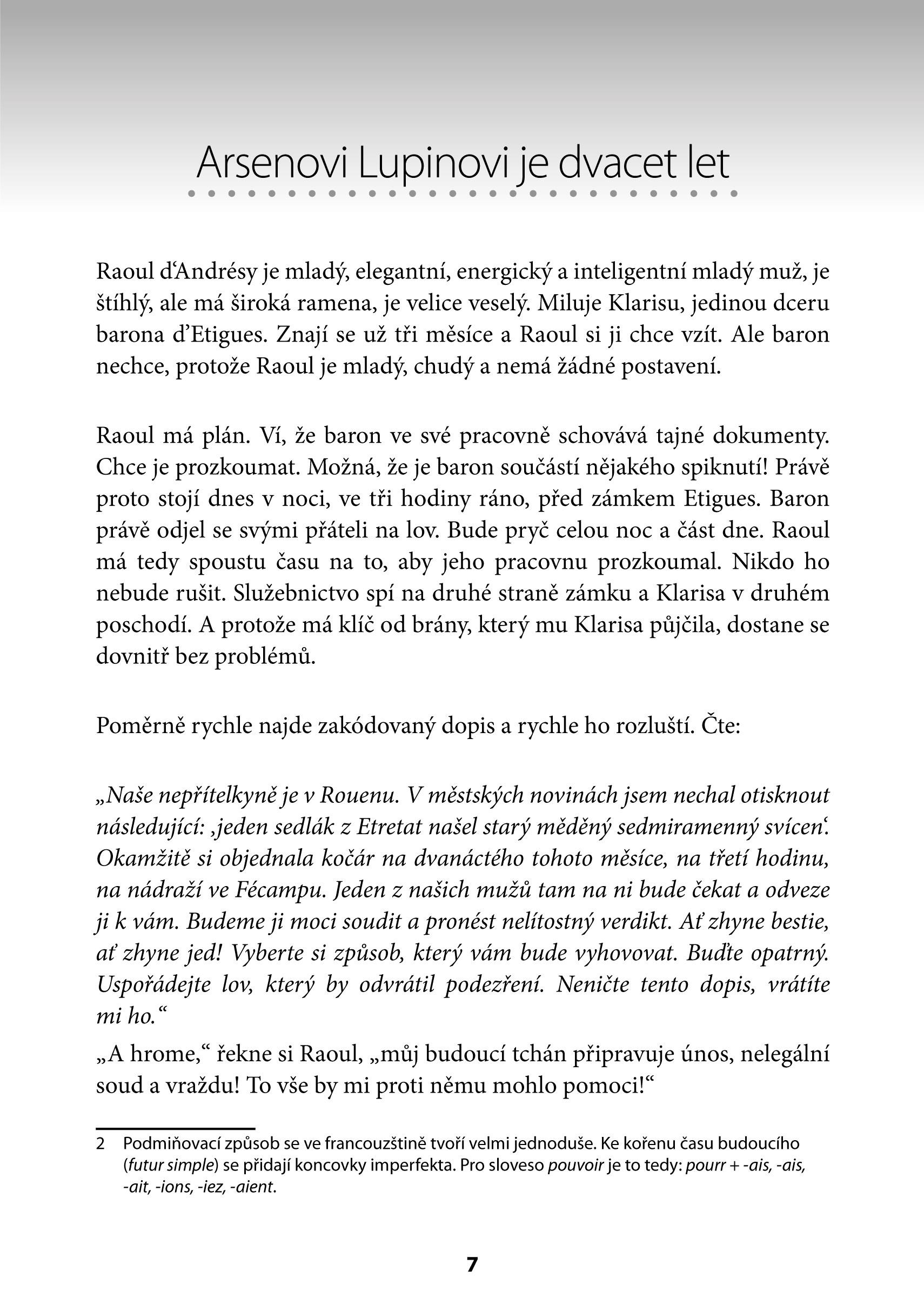 Odpovědi na otázky najdete v této knize. Publikace nabízí zjednodušenou verzi románu, která je určena pro studenty francouzštiny mírně pokročilé úrovně (A2-B1 podle SERR pro jazyky). Díky ní nejen pochopíte příčiny, proč se ze sympatického dobrodruha stává obávaný lupič, ale také si procvičíte francouzštinu.