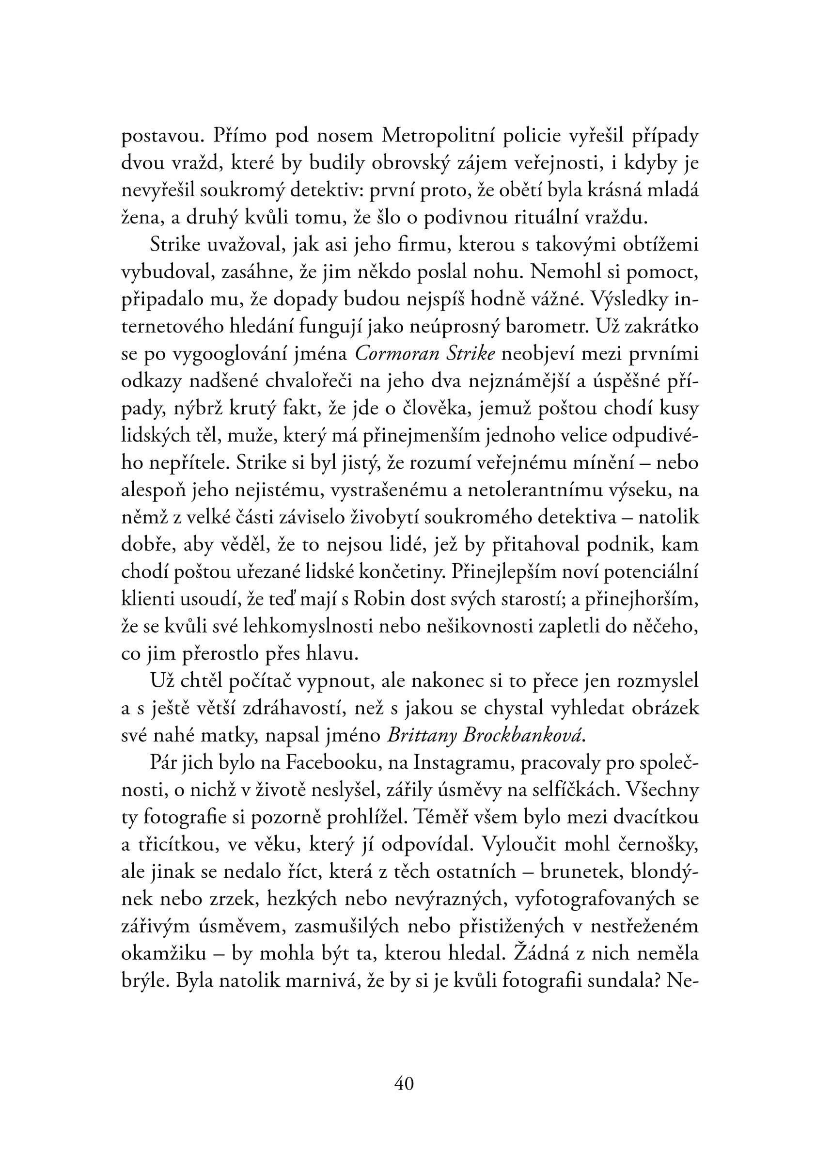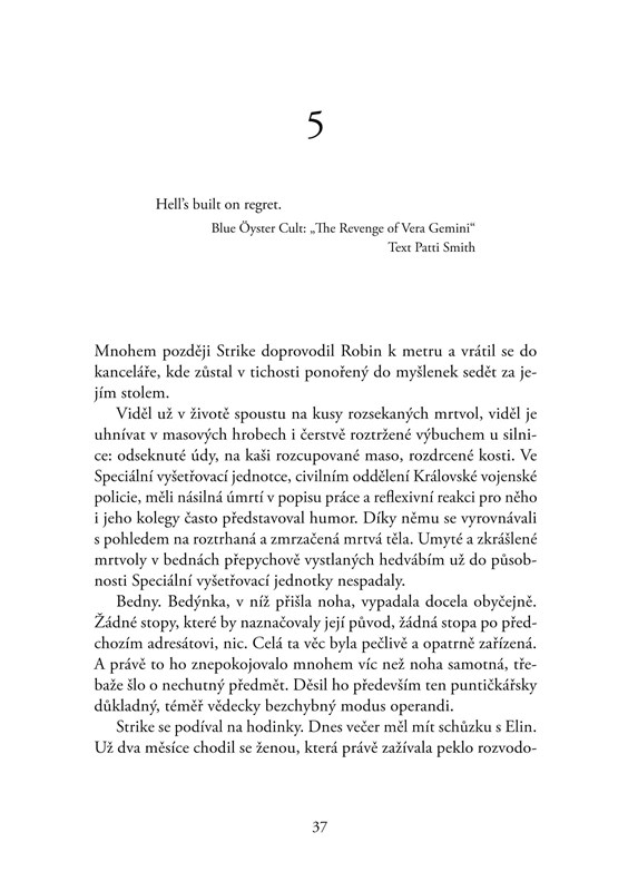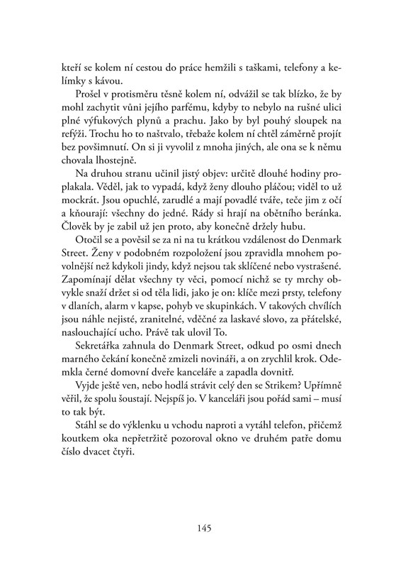 Třetí případ Cormorana Strika a jeho sympatické asistentky Robin přináší nejen ďábelsky rafinovanou zápletku s neočekávanými zvraty, ale také poutavý příběh o vztahu oblíbené dvojice vyšetřovatelů na křižovatce osobních i profesních životů.