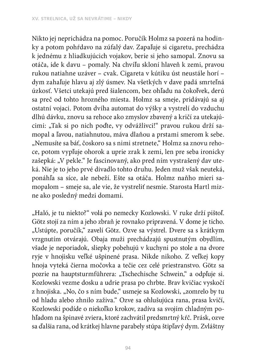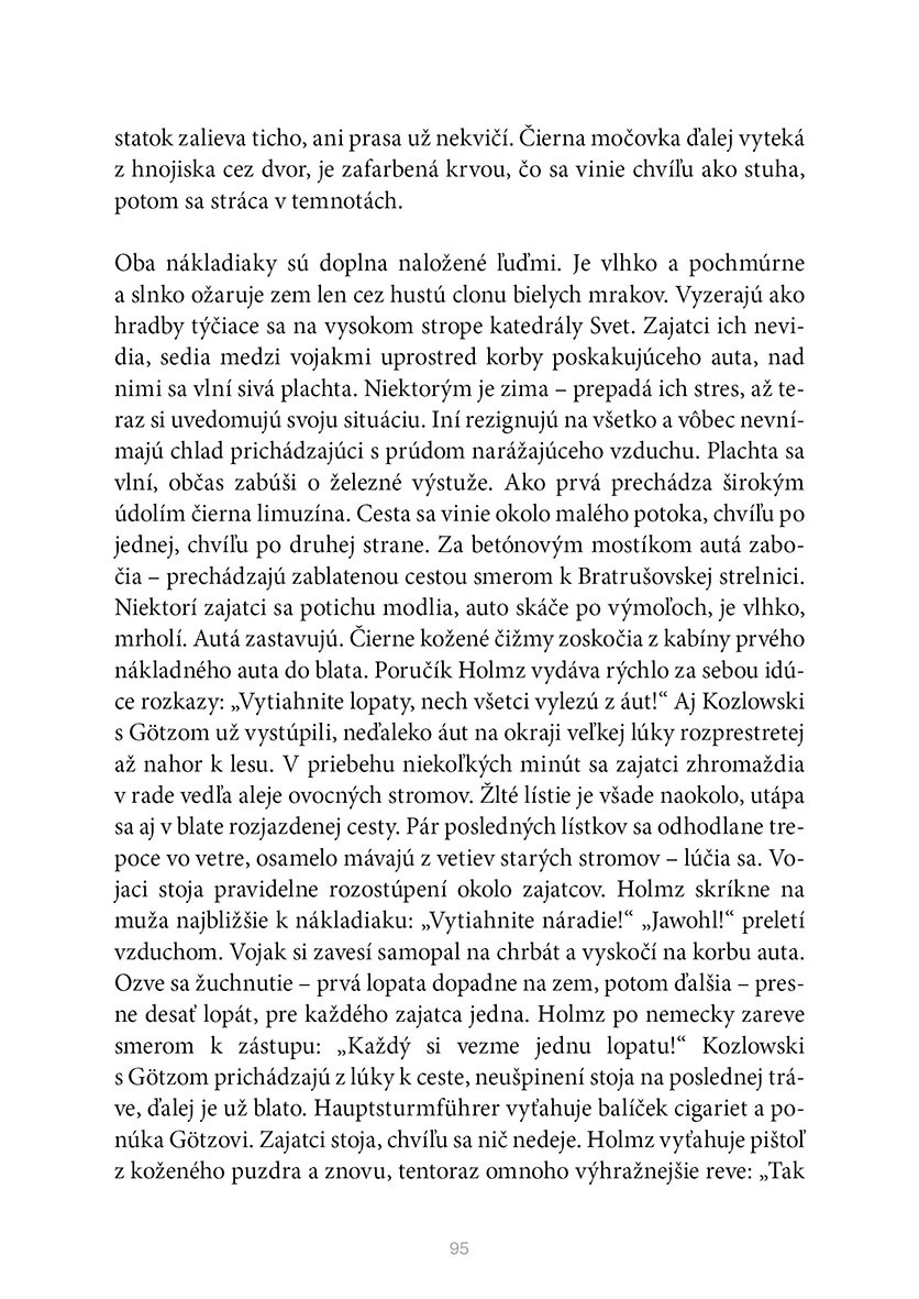 To, čo všetko zažili Židia počas druhej vojny, poznáme z nespočetného množstva kníh či filmov. Je to tak dobre a treba na to stále pamätať. Josef Urban však chce upozorniť aj na ďalšiu skupinu ľudí, ktorých vojna a jej dôsledky zasiahli podobným spôsobom. Násilné presuny nemeckého (a nielen nemeckého) obyvateľstva, uplatňovanie kolektívnej viny a činy samozvaných sudcov i katov sú impulzmi, na ktoré pri pozornom čítaní budeme musieť reagovať a konfrontovať svoje princípy s danou situáciou.