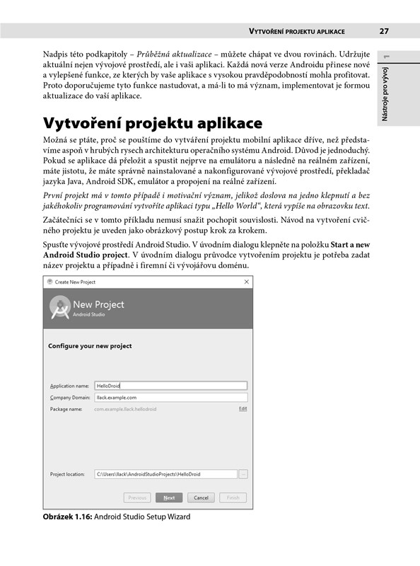 Se zkušeným autorem postupně projdete v jednadvaceti kapitolách celým procesem vývoje aplikace. Seznámíte se s vývojářskými nástroji, návrhem uživatelského rozhraní a funkčního pozadí aplikace, možnostmi škálování pro telefony, tablety i nositelná zařízení a nabídkou softwarových i hardwarových prvků, které můžete ve svém projektu využít. Naučíte se zapojit do své aplikace senzory, GPS, propojit ji s externími zdroji dat a službami a hotový výsledek publikovat v aplikačním obchodě Google Play.
