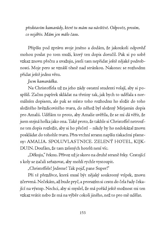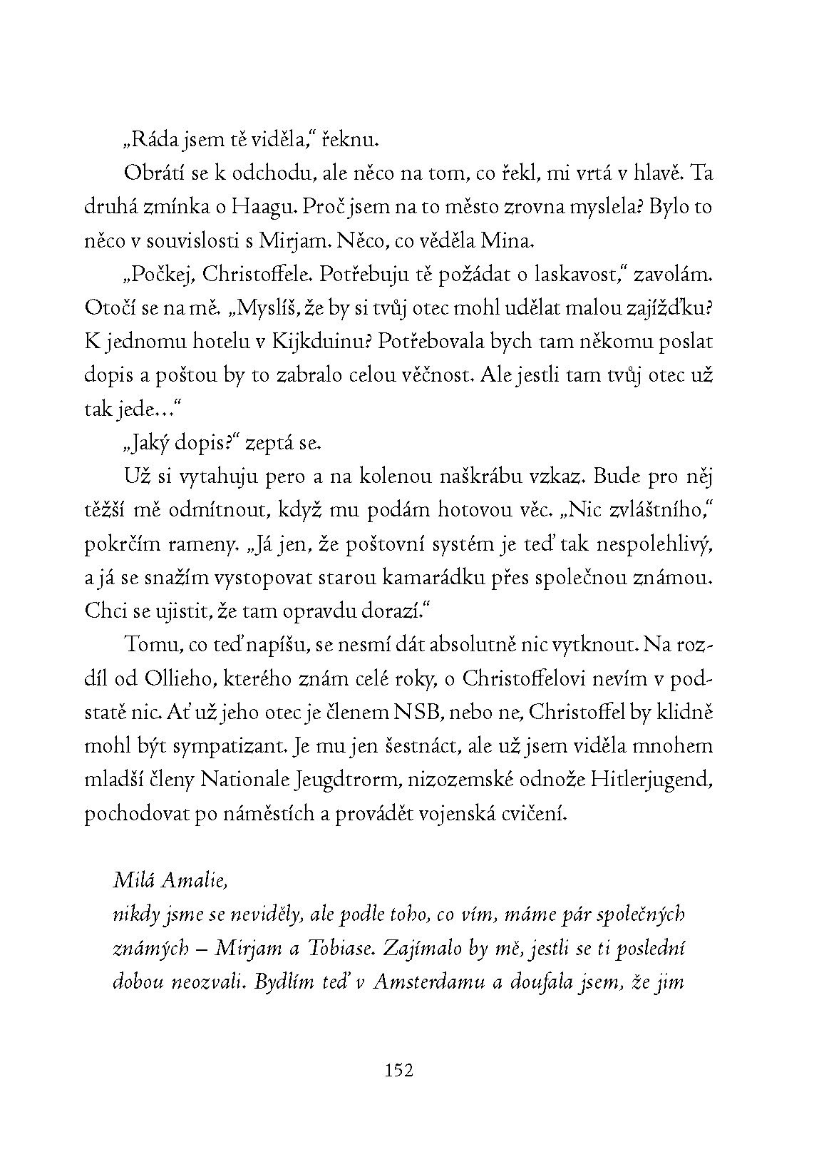 Hanneke zprvu ani neuvažuje o tom, že by se do nebezpečného pátrání pustila. Pak ale položí první otázku. Když dostane odpověď, chce najednou vědět víc. Postupně je vtažena do pavučiny tajemství a ohromujících odhalení, která ji zavedou až do samého srdce studentského protinacistického odboje…