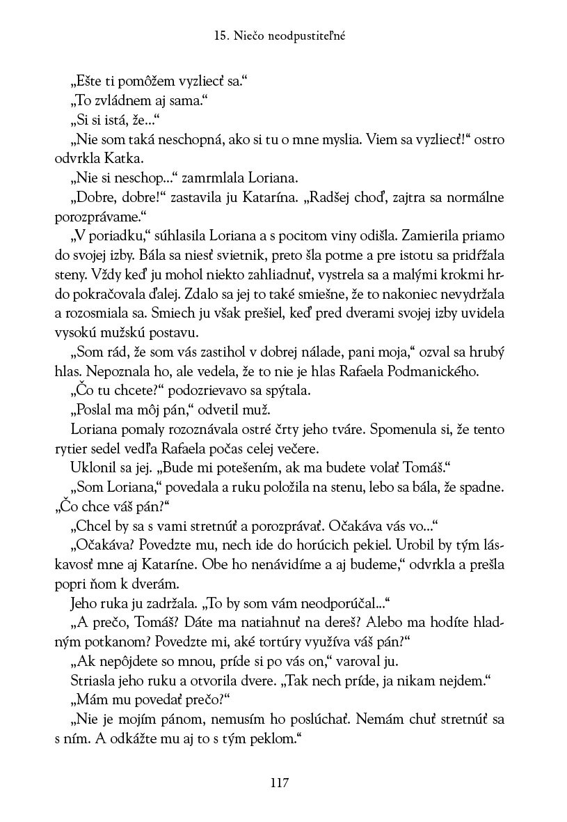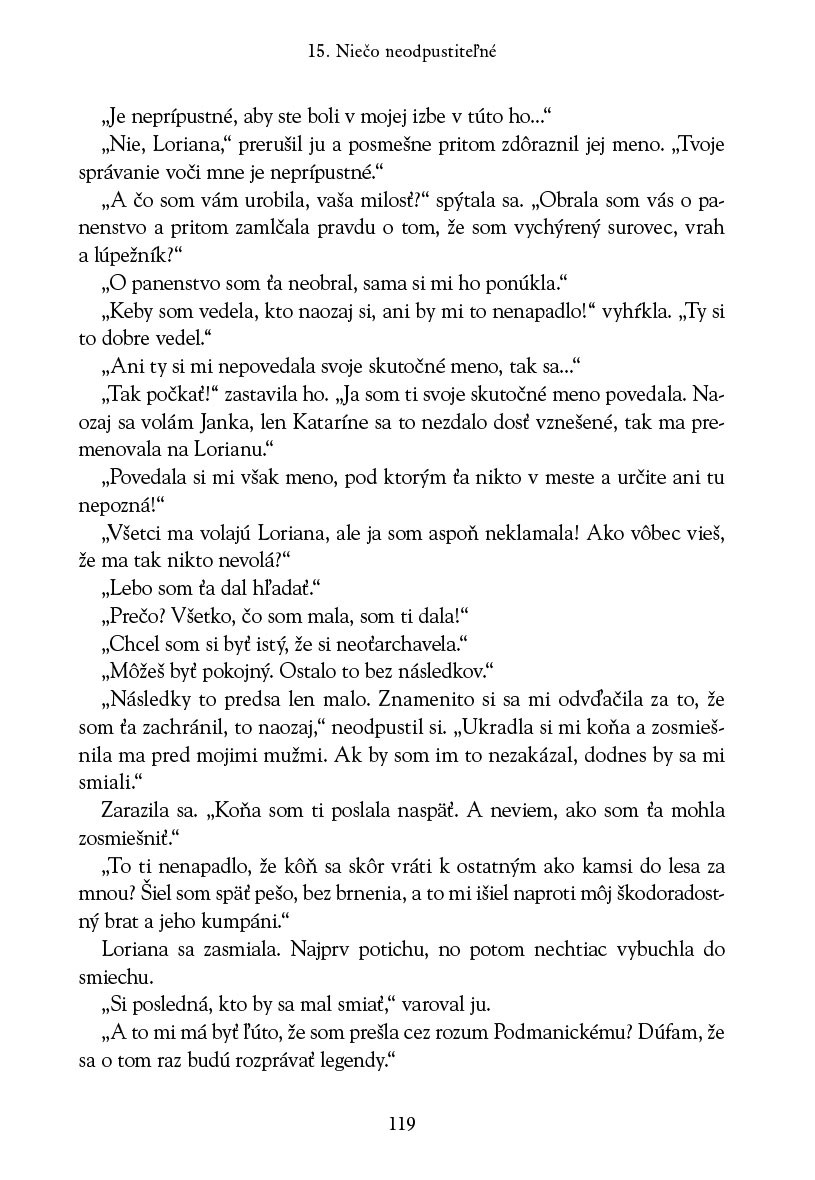 Jedného dňa ich mesto prepadnú nebezpeční bratia Podmanickí so svojou bandou. Lorianu našťastie zachráni tajomný šarmantný rytier, do ktorého sa naivne zamiluje. Až po rokoch pochopí, že sa nechala oklamať, ale už je neskoro - Loriana sa svojho rytiera nedokáže vzdať.