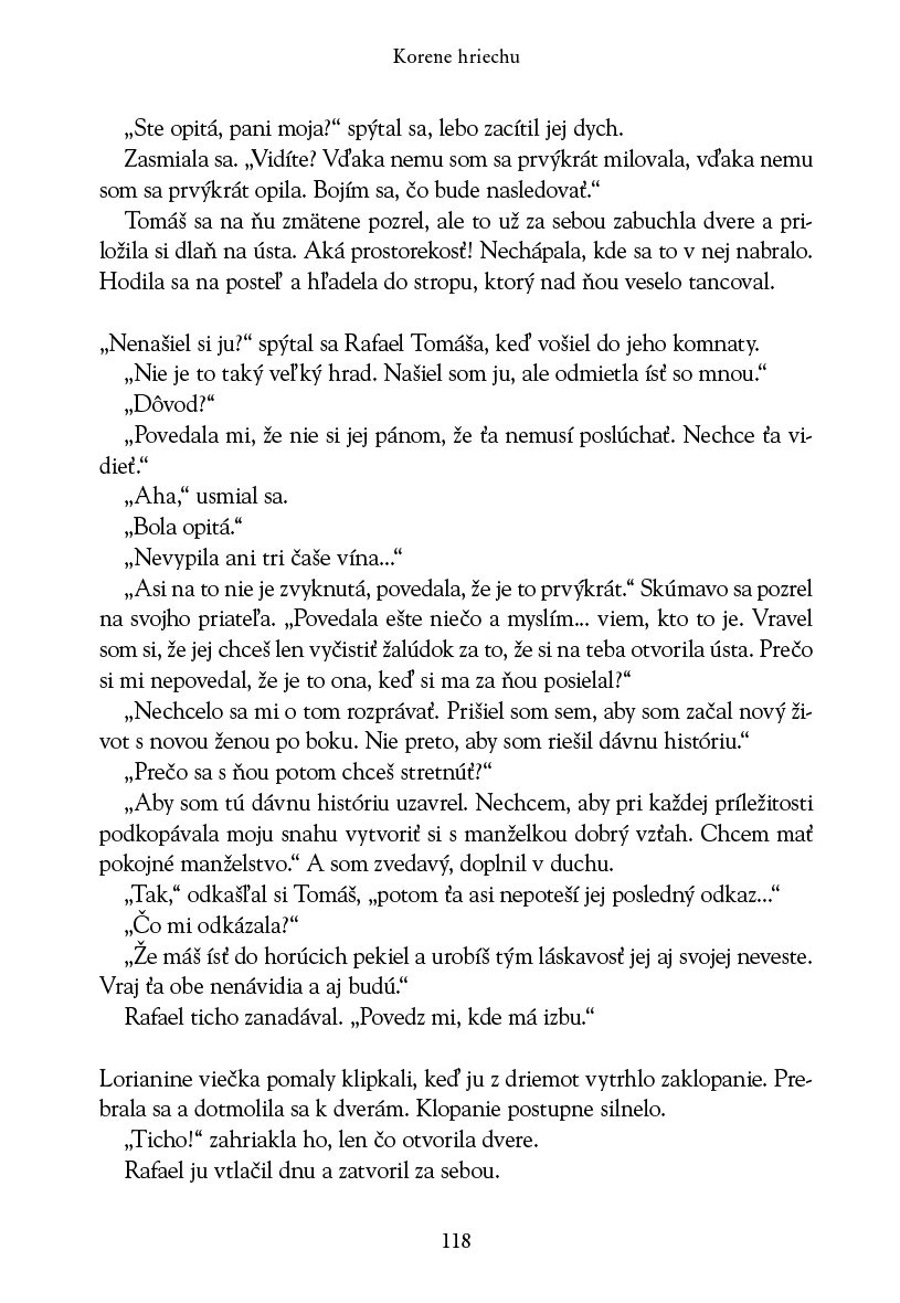 Faktom však ostáva, že majú Korene hriechu spočiatku až príliš pomalý rozbeh a miestami rozťahaný dej. Keby bola kniha menej pútavo napísaná, bol by to pre mňa dosť veľký problém. Našťastie ku koncu došlo i na akciu, niekoľko zvratov a nechýbalo napätie. Ďalšou výhradou - tentoraz vyslovene subjektívnou - je, že som sa nedokázala stotožniť s niektorými posolstvami a nesadla mi tá (miestami predramatizovaná) "hriešna" tematika.