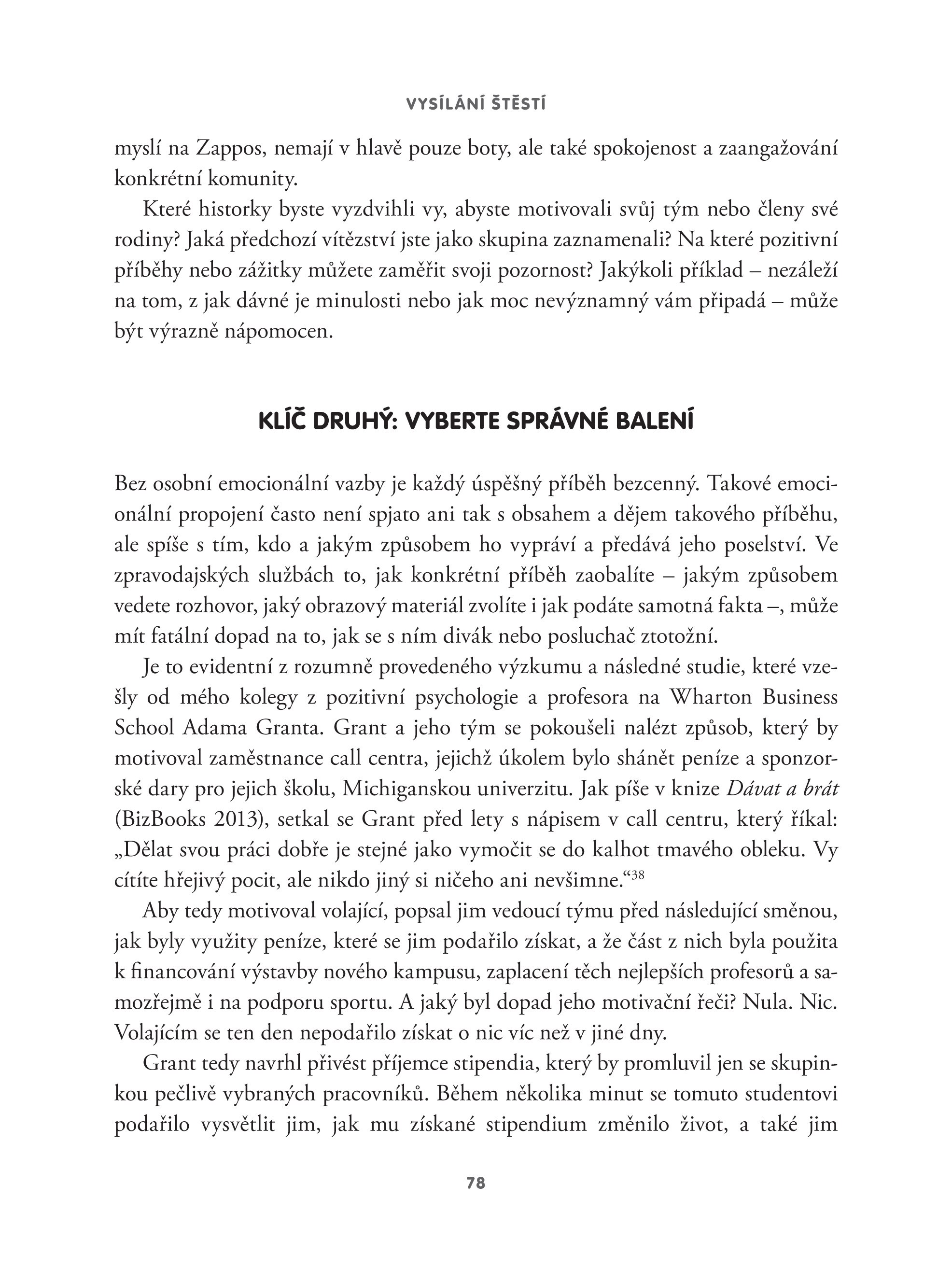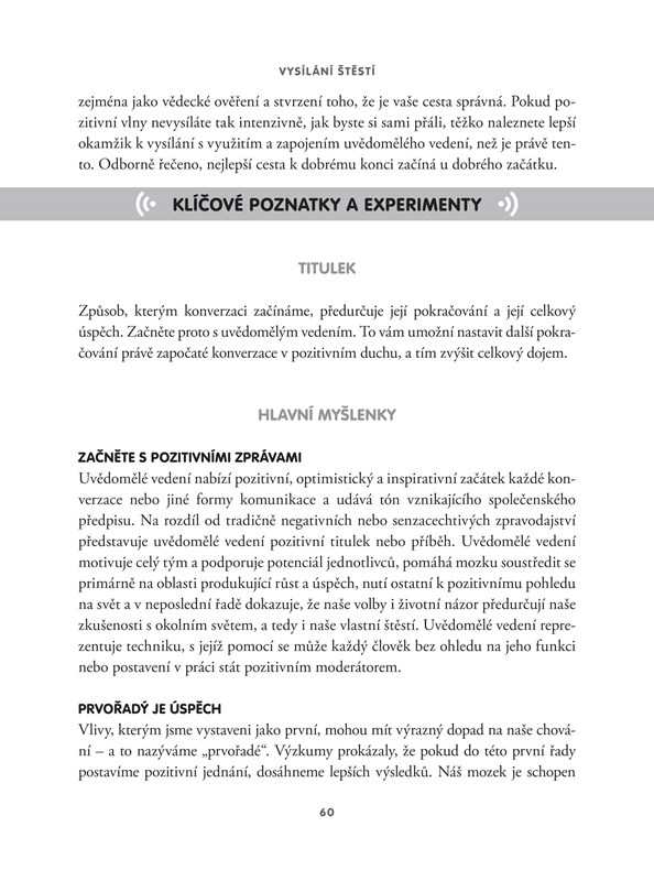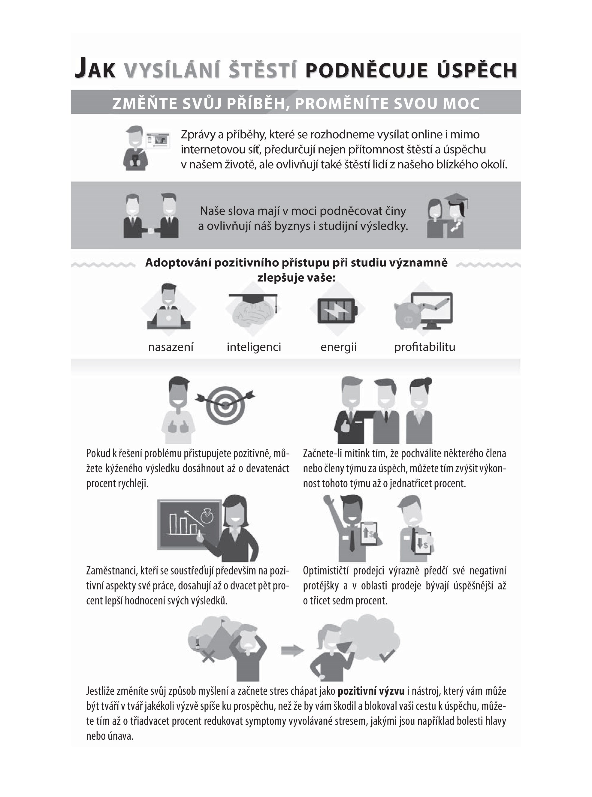 Kniha se zásadně liší od jiných osobně-rozvojových titulů. Ukazuje totiž, jak udělat šťastným nejen sebe, ale i lidi kolem nás – naše kolegy, rodinu, přátele.