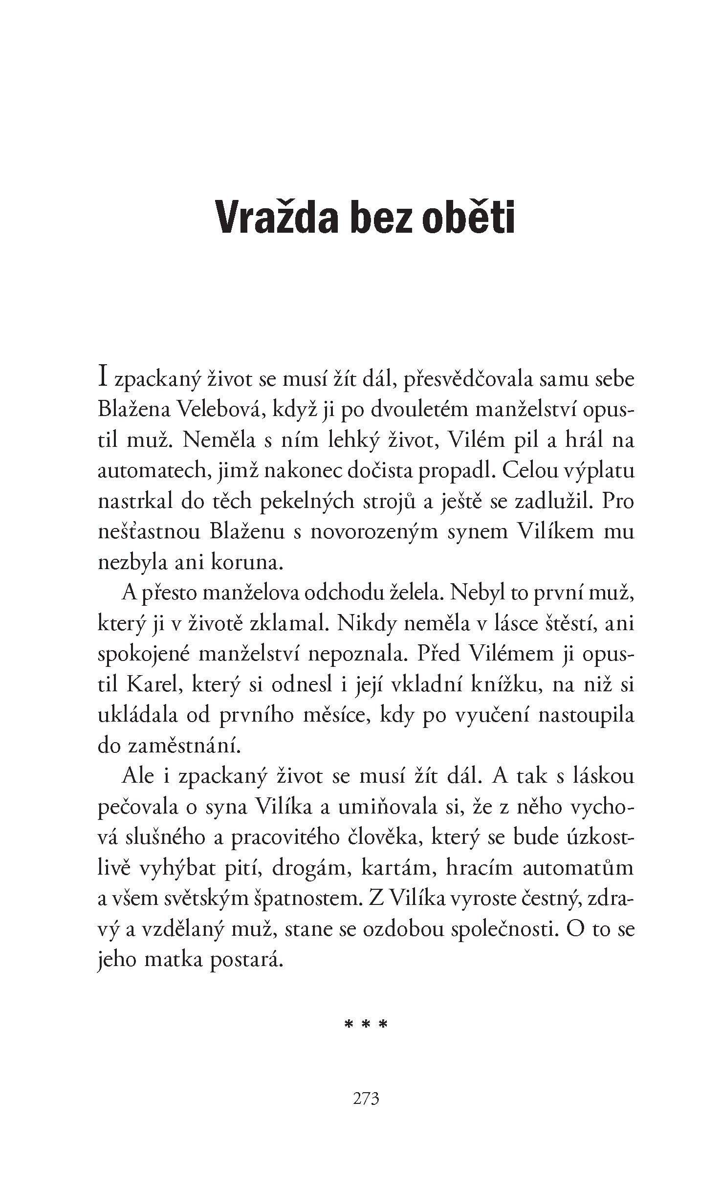 Dvacet kriminálních povídek nás zavádí do nejrůznějších prostředí a odhaluje různé podoby lidských vztahů, vášně a touhy, které doutnají pod povrchem a nakonec vedou ke zločinu, jehož motivy bývají někdy velmi podivné a občas i naprosto malicherné. Žádný zločin ale není pro pachatele bez rizika, i když počítá s tím, že za sebou zametl všechny stopy. K odhalení pak stačí drobná chybička nebo prostě jen náhoda.