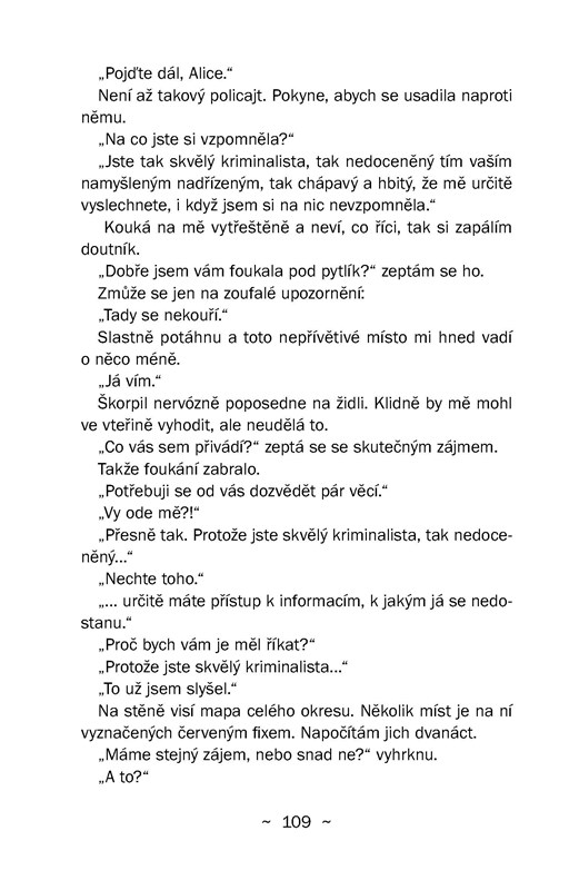 Do bývalého sklářského městečka Vlčí Úpice přijíždí mladá geniální šachistka Alice, aby tu sehrála provinční simultánní partii se členy místního šachistického kroužku Vlček. Krátce po příjezdu však doslova zakopne o mrtvolu místní starostky. Během ukázkové hry Alice vztekle smete figurky z šachovnice, a připraví se tím o velkou příležitost, ale ona už hraje jinou partii... Navzdory svému trenérovi Jonášovi, policii i všem obyvatelům městečka se snaží vypátrat, co se stalo a proč umírají další lidé. Vrah je na tahu. Dá mat, nebo ho Alice zastaví? A přestanou v městečku výt vlci?