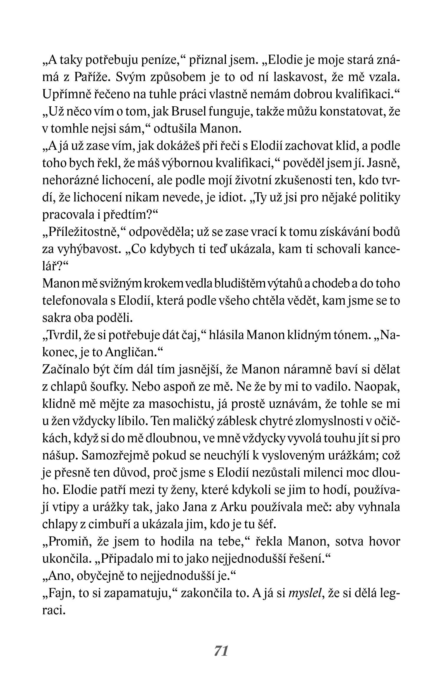 Vážně ti cvoci z Bruselu chtějí postavit mimo zákon bingo, dudy a slaninové chipsy?! A skutečně inkoust na bankovkách eura způsobuje u mužů impotenci?! Ale kdeže. Ovšem nelze popřít, že instituce Evropské unie mají četné mouchy. A hrozí, že jich ještě přibude, protože se do Bruselu právě vydal také Angličan Paul West, aby byl k ruce francouzské poslankyni Evropského parlamentu. Na vlastní oči se tak může přesvědčit, jaký je to neskutečný blázinec. A spolu s tím, jak se kvapem blíží referendum, v němž bude celá Británie hlasovat o setrvání v EU, má Paul West dokonce příležitost sám zasáhnout do jeho výsledků. Jenže napřed se musí rozhodnout: je lepší nepřítel, kterého už známe, nebo riskovat brexit? A dobře ví, že ho rozhodnutí může stát mnohem víc než jen příjemný europlat.