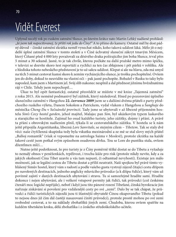 Kniha „Dobytí jižního hvězdnatého ráje“ není jen obyčejným cestopisem, ale pro vášeň autora ke hvězdám a hvězdnému nebi jde o cestopis plný krásných odkazů k pohledům do vesmíru, o kterých ani nevíme, jak snadno si je můžeme dopřát. Zachycuje 6letou pouť po světě, kterou autor začal ve svých 22 letech a během níž se vyvíjel jak myšlenkově, tak cestovatelsky. Postupně si kladl větší a větší nároky pro naplnění svých tužeb. Poznáte proto krásu mnohými nepoznaného a také sílu odhodlání člověka, jehož motivace všem ostatním přišla fádní, dokud je nevyvedl z omylu výsledkem svého úsilí. Nezvyklý mix cestopisu, osobních výpovědí, vzpomínkové kroniky s humornými, romantickými i dramatickými zážitky, plný fotografií (zdaleka nejen) hvězdné oblohy i astronomických úkazů z celého světa a krátkých autorových populárně naučných poznámek přináší čtenáři opravdu neotřelý zážitek.