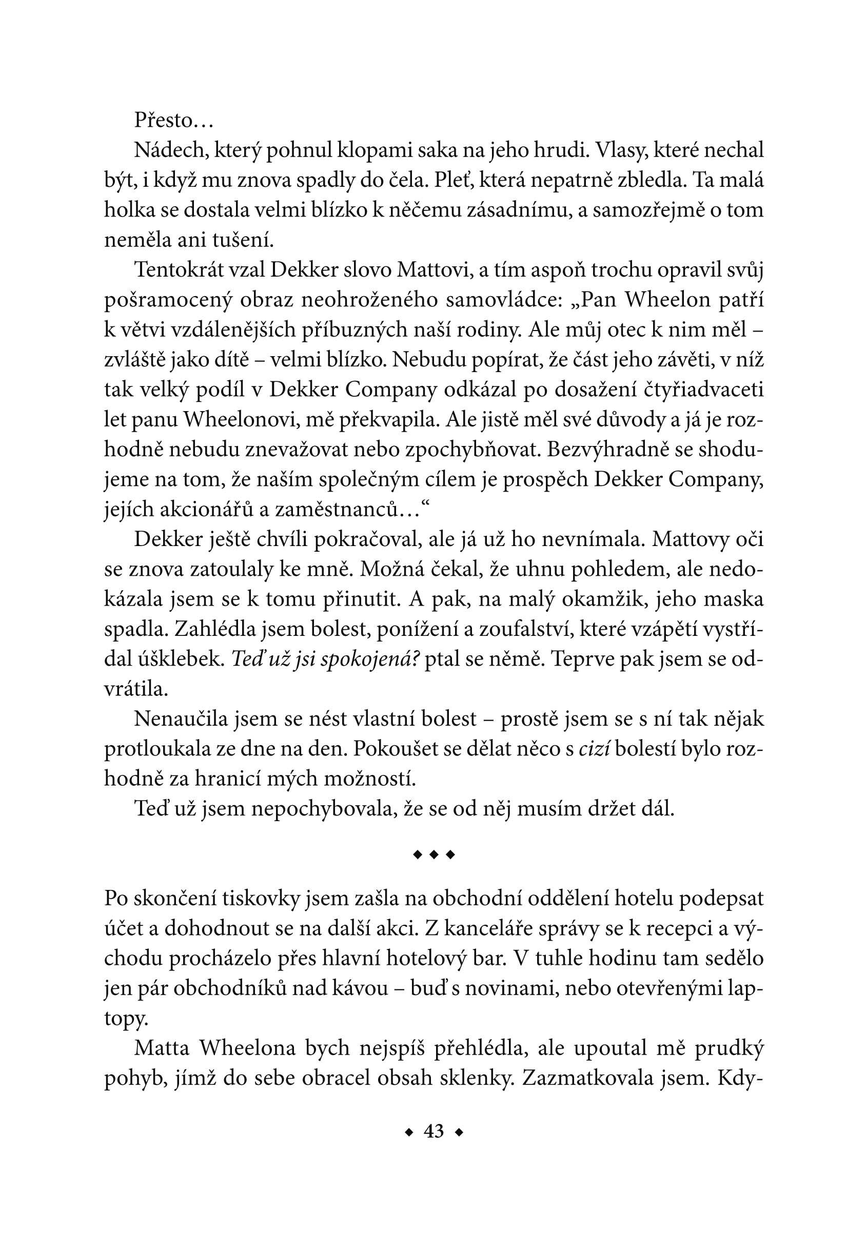 Madison Hortonovou nikdy nenapadlo, že by její život mohl být něčím jiným než pouhým přežíváním. Matka, která nikdy nebyla skutečnou matkou. Milenec, který ji nikdy nemiloval. Přítelkyně, která ji vždycky považovala za nepřítele. Maddie pochopila, že opravdové a skutečné jsou jen bolest a utrpení. Naučila se, že se na ně může spolehnout.
