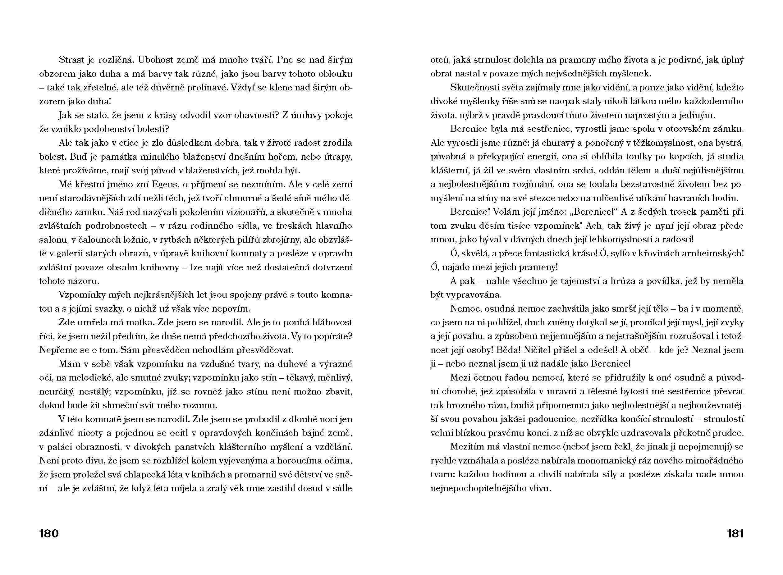 Edgar Allan Poe bol americký prozaik, ktorý sa venoval písaniu fantastických, mystických, hororových, tragikomických či detektívnych príbehov. Stále je považovaný za majstra hororu, vďaku tomu, že dokázal bravúrne zachytiť napätú atmosféru a hlavne vnútorné rozpoloženie postáv, ich myšlienkové pochody, ktoré čitateľa neraz privádzali do úžasu a pri mnohých naskakovala husia koža. Knižka Jáma a kyvadlo a jíné povídky obsahuje výber 27 napínavých príbehov, ktoré vás zavedú na rozličné miesta a nazriete do myšlienok zaujímavých a nevšedných postáv. Prečo milovník zvierat, ktorý od malička túžil vlastniť domáceho maznáčik a neskôr v dospelosti si svoju túžbu aj splní, odrazu znenávidí svojho kocúra? Prečo ho tak často týra a spôsobuje mu muky? Alebo čo má v úmysle tajomný muž, prechádzajúci sa po ulici v tmavom plášti a bezcieľne nasledujúci svoju intuíciu? Ako je možné, že muž v hypnóze dokáže s úsmevom na tvári hovoriť o smrti a okolnostiach, ktoré k nej vedú? To je iba zlomok z mnohých otázok, ktoré si pri čítaní jednotlivých poviedok budete dookola klásť a často sa pozastavíte nad tým, ako je možné, že autor dokázal tak skvele zachytiť celkovú atmosféru daného okamihu. Toho okamihu, ktorý sa nikdy nezopakuje a zároveň podnecuje postavy k ich činom. Okamihu, ktorý čitateľa desí a snaží sa akosi poskladať rozbité úlomky a odhaliť dôvody ich konania.