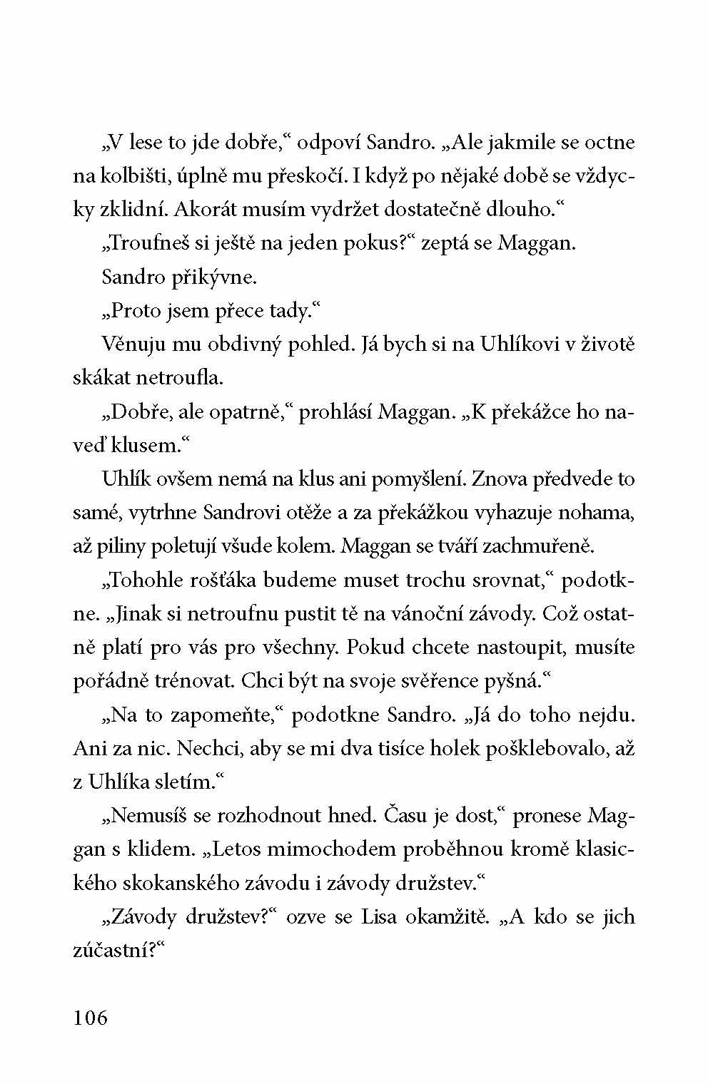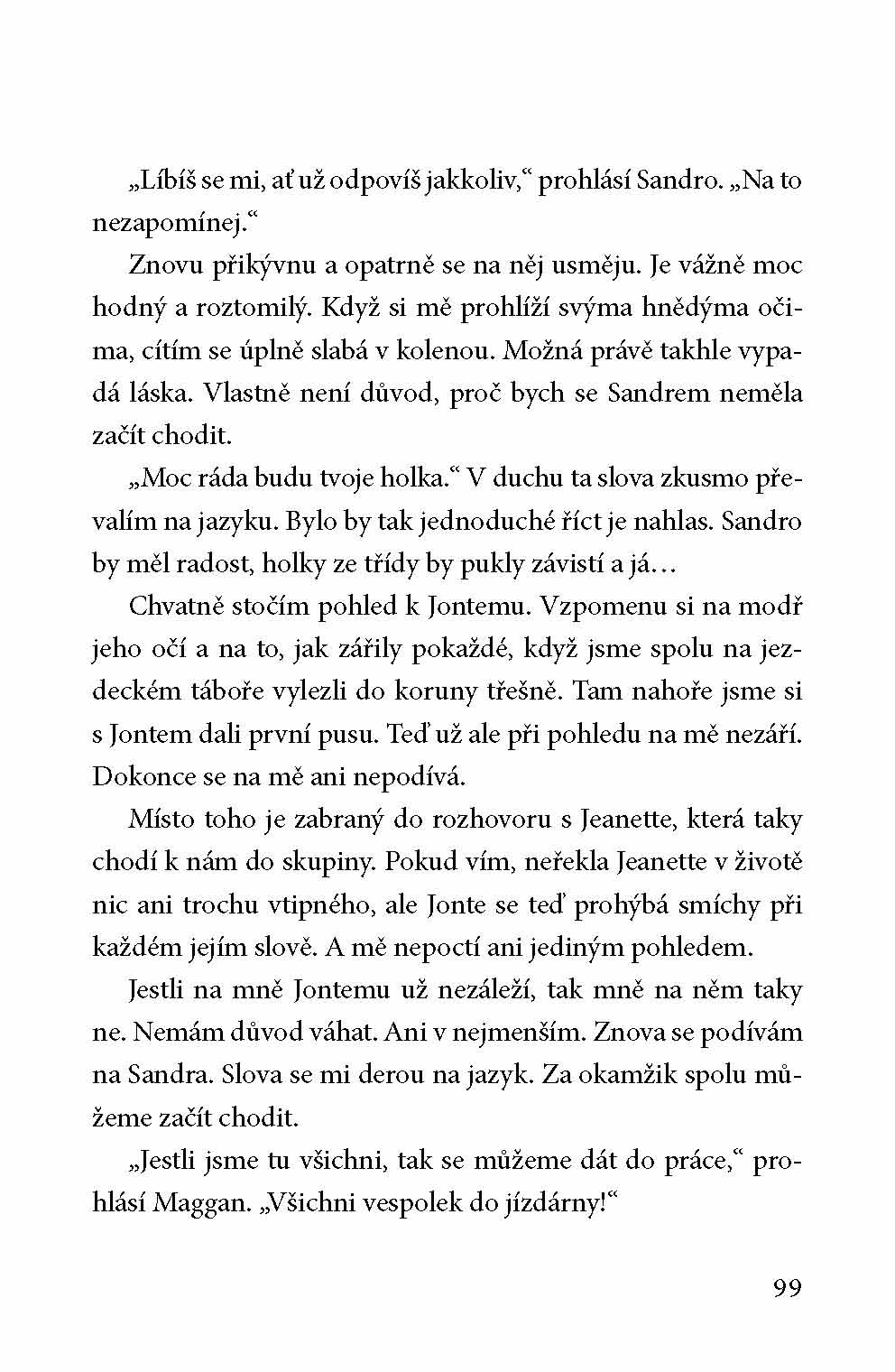 Tentokrát se Klára zmítá mezi dvěma kluky – svým nejlepším kamarádem Jontem a jeho černovlasou kopií, bratrancem Sandrem. Klára neví, pro kterého z nich se rozhodnout, myslí si, že Jonte se na ni zlobí, protože jí Sandro dal pusu, a tohle všechno ji tak zaměstnává, že skoro nemá čas na Stara, což štve zase ji. A aby toho nebylo málo, Klářina máma si taky pořídí vlastního koně, kobylku arabského plnokrevníka!