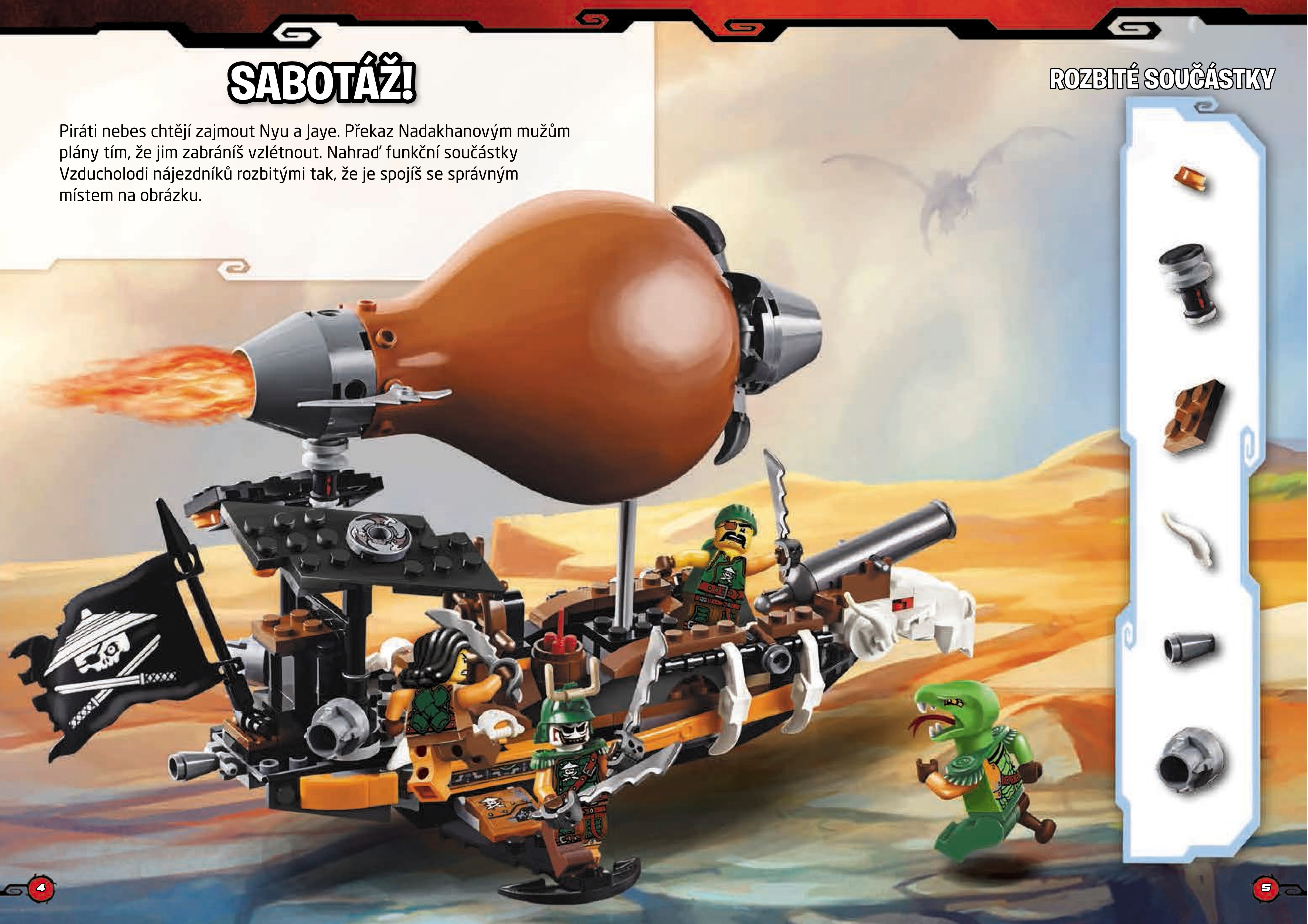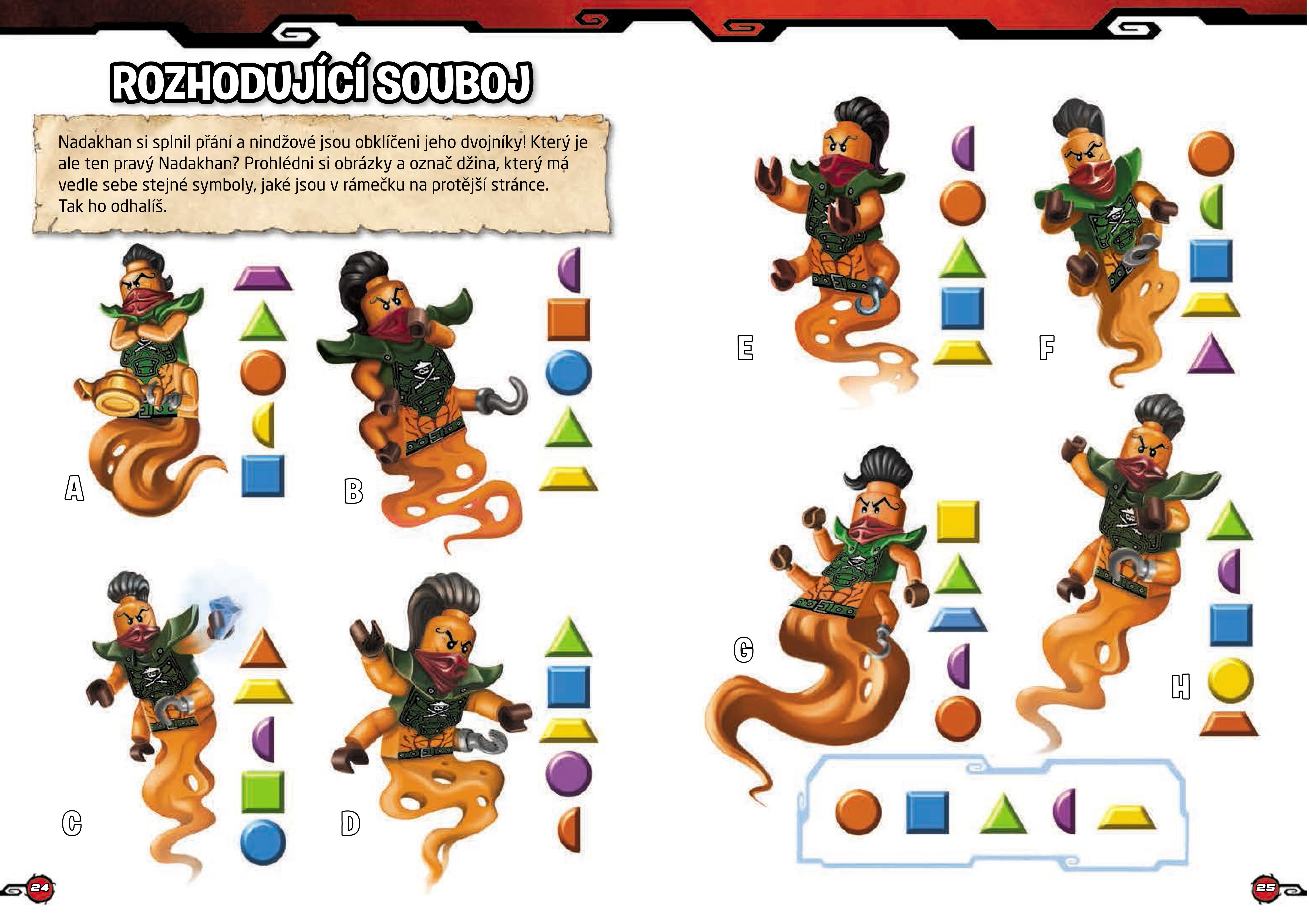 Když zlý džin Nadakhan, který překroutí každé přání, a jeho družina Pirátů nebes napadnou svět Ninjago, mohou se mu postavit jedině Mistři Spinjitzu! Jak ale mohou chrabří nindžové zachránit svět, když je většina z nich uvězněna v magické čepeli džinova meče? To zjistíš, když si přečteš o nových dobrodružstvích nindžů a vyřešíš všechny vzrušující aktivity v této akcí nabité knize!