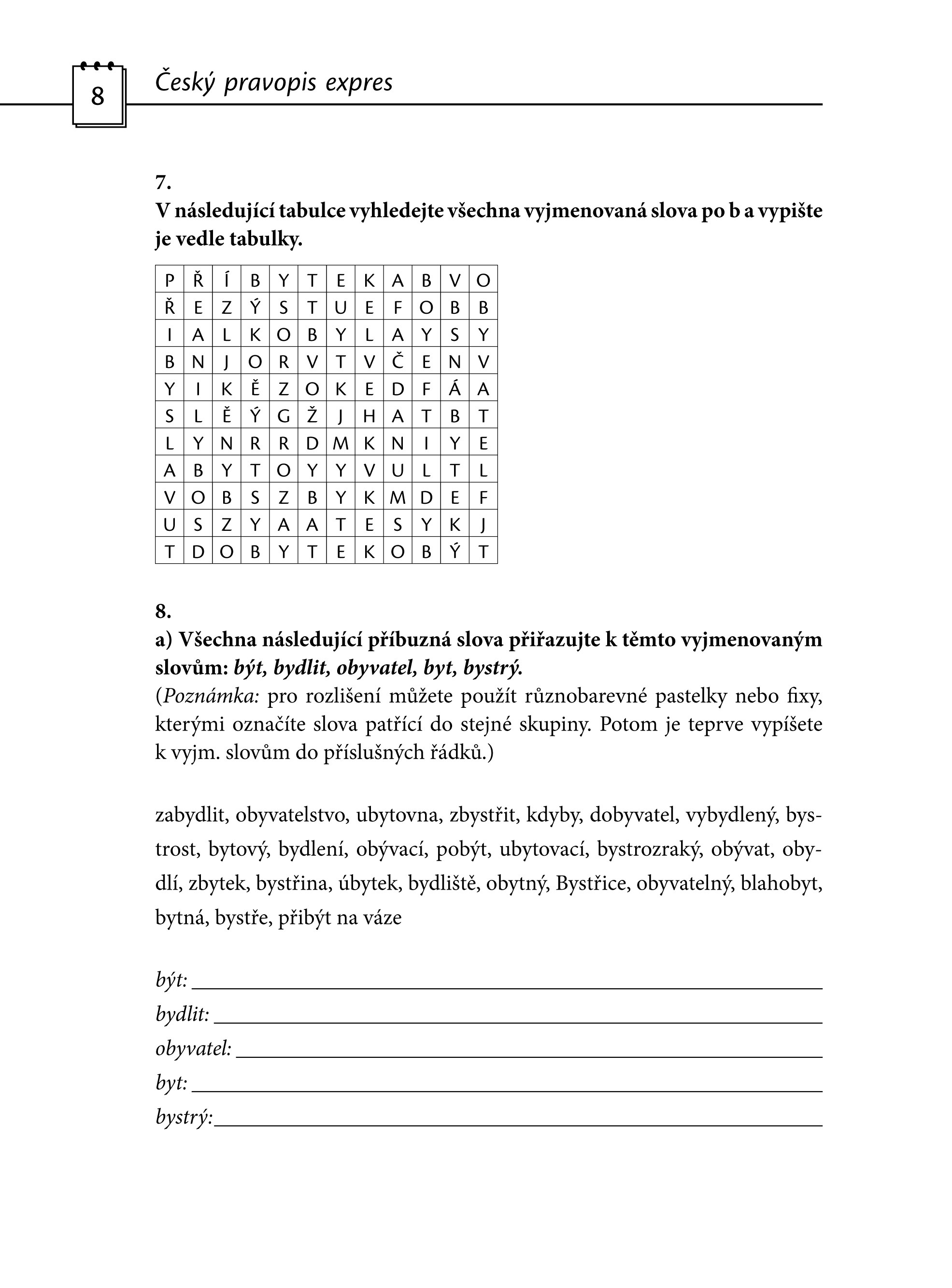 Publikace Český pravopis expres je určena nejen žákům 2. stupně ZŠ, studentům středních škol, jejich učitelům a rodičům, ale i široké veřejnosti. Každý z nás se občas dostává do situace, kdy si neví rady s nějakým obtížným pravopisným jevem. A právě tato kniha přináší shrnutí všech základních pravopisných pravidel, v nichž si každý může najít to své.