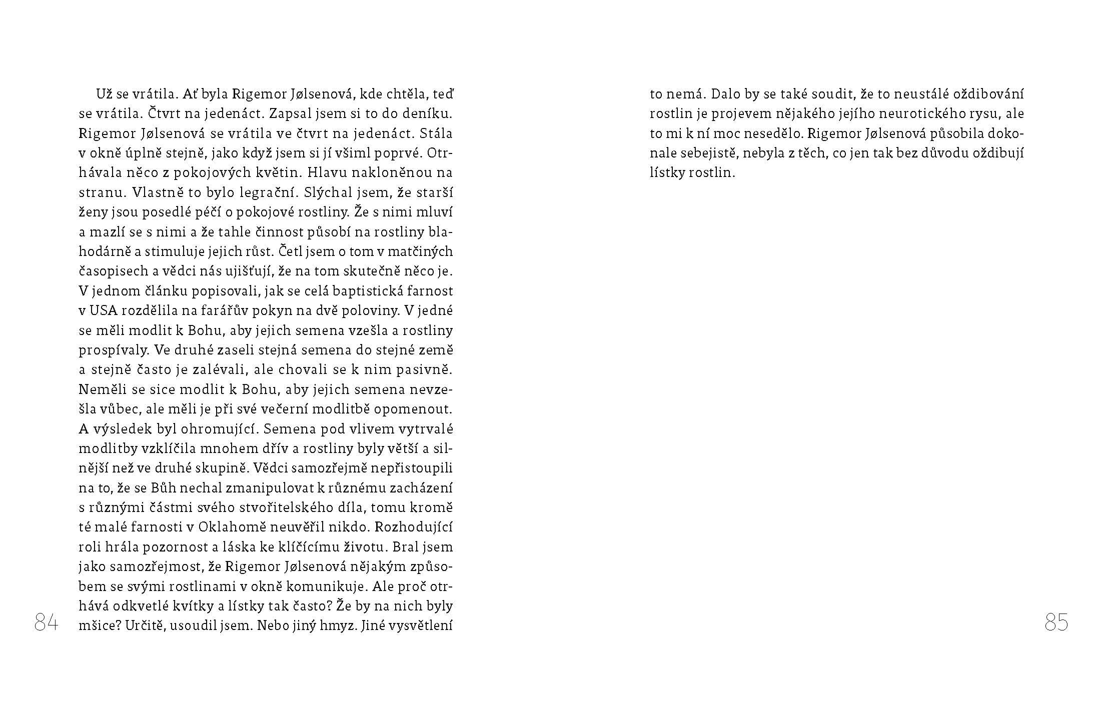 Celý Ellingův dosavadní život, dvaatřicet let, tu byli jen oni dva – on a matka. Po její smrti se plachému asociálovi otevřou zcela nové výhledy… Pořídí si dalekohled a šmíruje sousedy, domýšlí si jejich minulost, osudy i dialogy. O všem si vede pečlivé deníkové záznamy. Neváhá vyrazit i do terénu a pozorovat své objekty na poště nebo v supermarketu. Vzniká tím spousta úsměvných situací, ale jeho bezelstnýma očima spatříme i leccos nelichotivého o takzvaně normálních lidech.