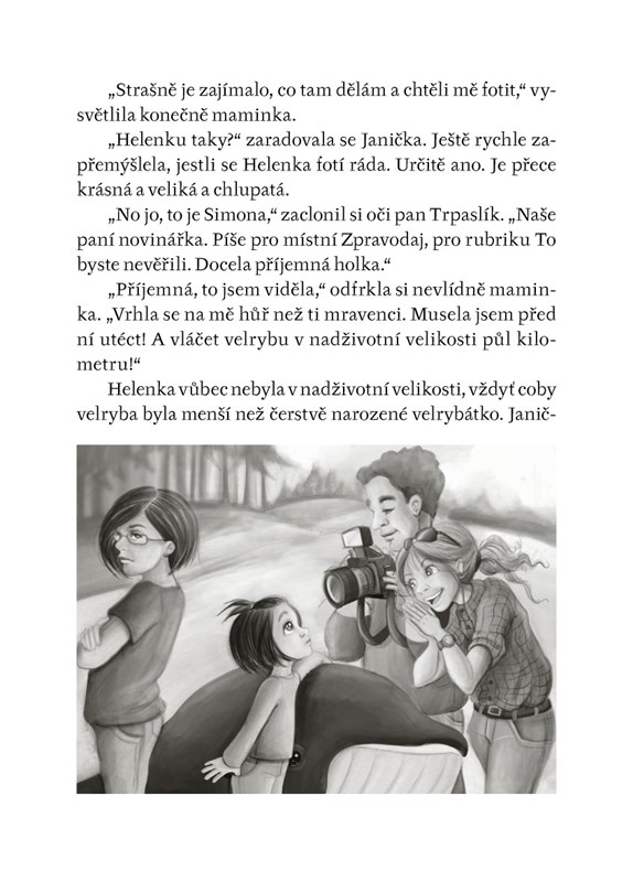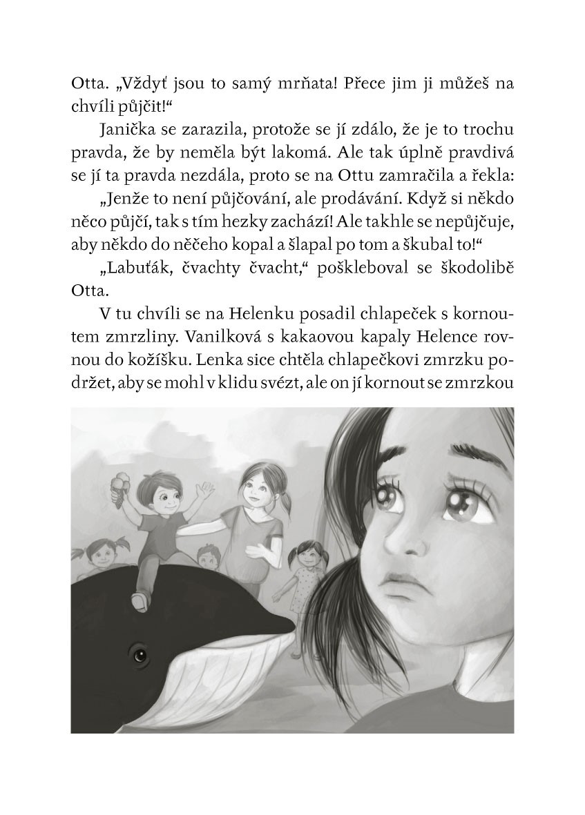 Janička chodí do druhé třídy a ví si rady skoro se vším. Jednoho dne se stane fůra divných věcí, a tou nejpodivnější je to, že dostane velrybu. Jmenuje se Helenka a je větší než maminka s tatínkem dohromady. Co na její novou kamarádku řeknou rodiče? A hlavně, co tomu řeknou lidi?