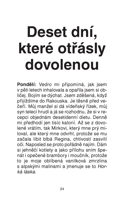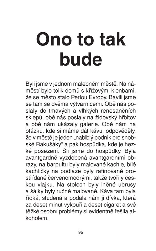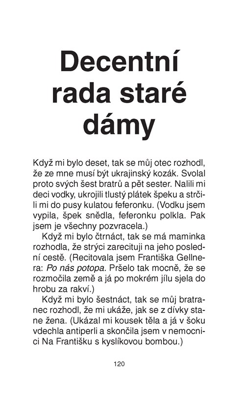 Pokud se začtete do této knížečky, zjistíte, že i celebrity mají obyčejné problémy, děti, rodiče, rodinné příslušníky, kteří jsou praštění, hamižní, závistivý a kdo ví jací ještě. Najdete však také povídky o úplně cizích lidech a jejich životních trampotách nebo poznatcích. A hlavně spoustu moudrostí jako třeba, že v lidském životě nejsou důležité věci, rozum a cíle. Nejdůležitější jsou (často i jen prchavé) okamžiky štěstí, které si s sebou (jenom vy) vezmete do hrobu!