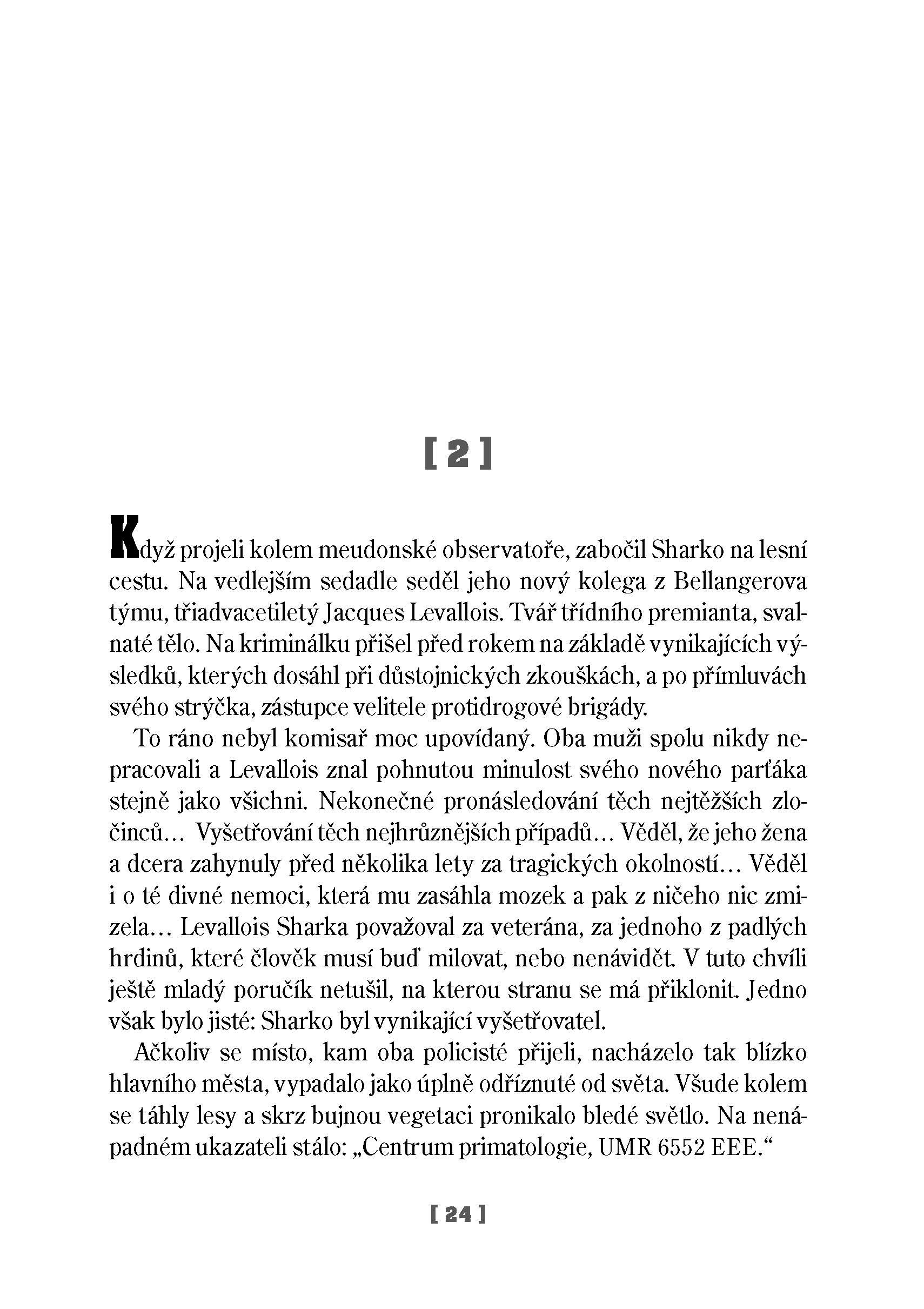 Postgraduální studentka Eva Loutsová byla zavražděna během svého výzkumu v Centru primatologie nedaleko Paříže. Zpočátku se zdálo, že jde o brutální útok šíleného zvířete, ale zdá se, že všechno je mnohem komplikovanější… Komisař Sharko a Lucie Henebelleová musí vyřešit případ, dřív než si TO, co zabilo Evu Loutsovou, přijde i pro ně…