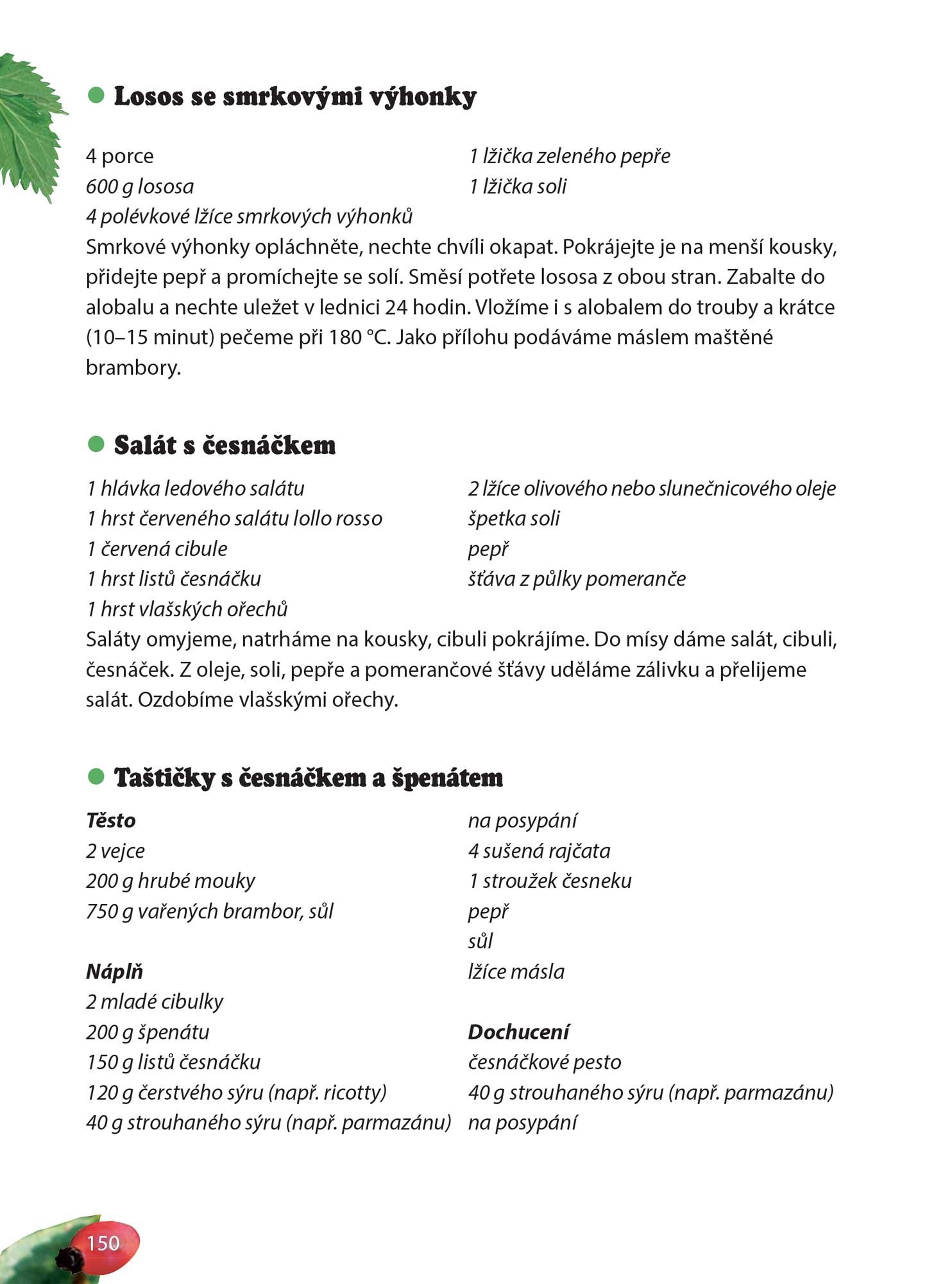 V knize naleznete velké množství receptů na čaje, tinktury, sirupy, kloktadla, bylinkové oleje, octy, medy, ochucené soli, cukry, vína, kandované květy, koupele, obklady, pleťové masky, masážní oleje, masti, krémy. Ale také sušenky, saláty, pesta, šťávy, zmrzliny, hořčice, špenáty, ba i postřiky proti škůdcům.