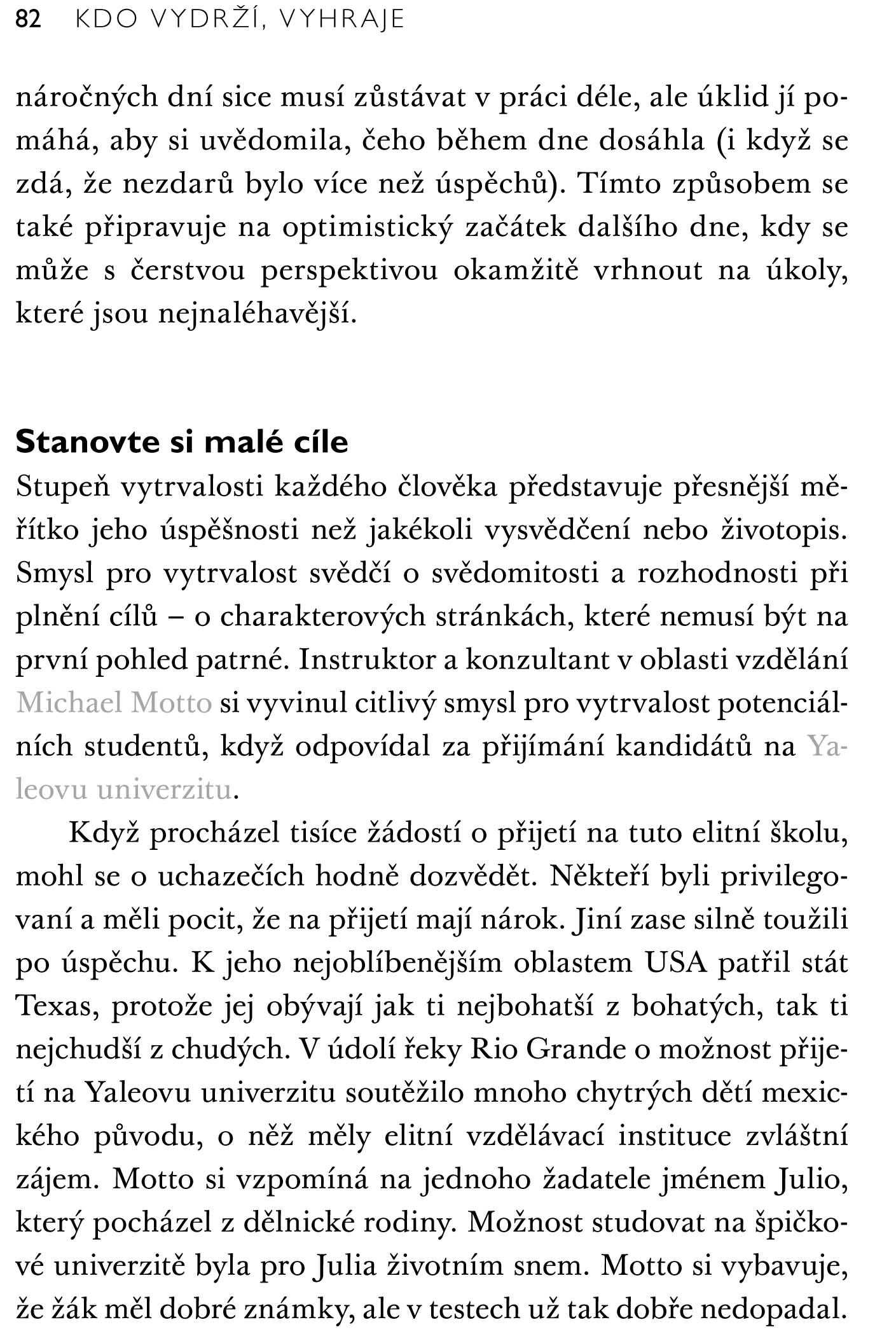 Jenomže právě vytrvalost, úsilí a ona zmíněná tvrdá práce, která není ani cool, ani sexy, je přesně to, co zase přichází do módy. Zaměstnavatelé, rodiče, odborníci i politici zkrátka docházejí dějinnou smyčkou opět k názoru, který ještě před padesáti lety nikoho ani nenapadlo zpochybňovat: že bez pevné vůle a odhodlání to prostě v životě nefunguje.