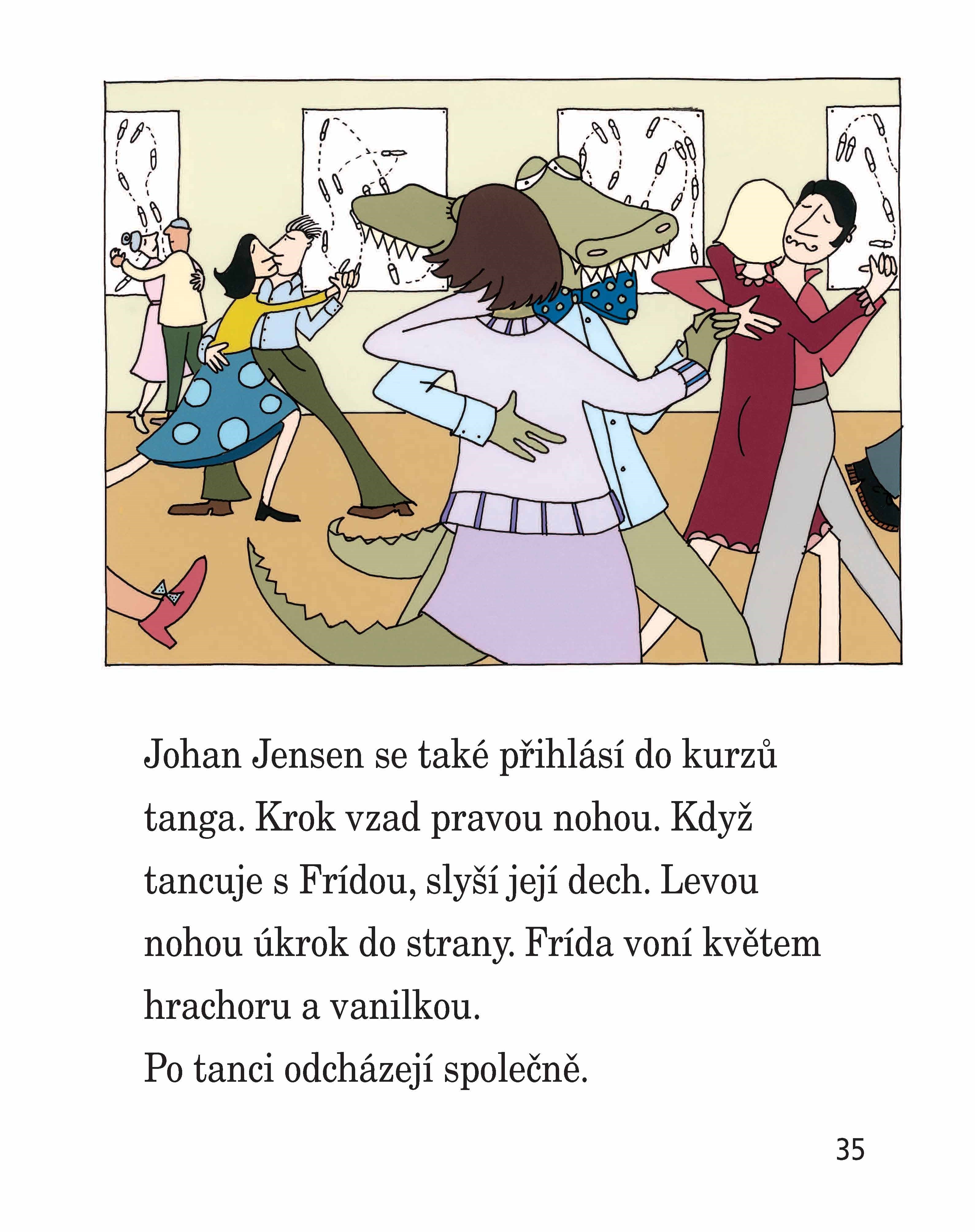 Johan Jensen bydlí sám, nikdo ho nebudí, nesedí s ním v obývacím pokoji, ani s ním nevečeří. Na zvonku u dveří je napsané jen jeho jméno. Johan se každé odpoledne vydá na procházku a jednou zahlédne hezkou krokodýlí slečnu zalévat zahradu. Od té chvíle chodí okolo i několikrát denně a Frídu pozoruje. A když Johan zjistí, že Frída navštěvuje hodiny tanga, pustí se i on do tance. Že by Johan konečně našel kamarádku?
