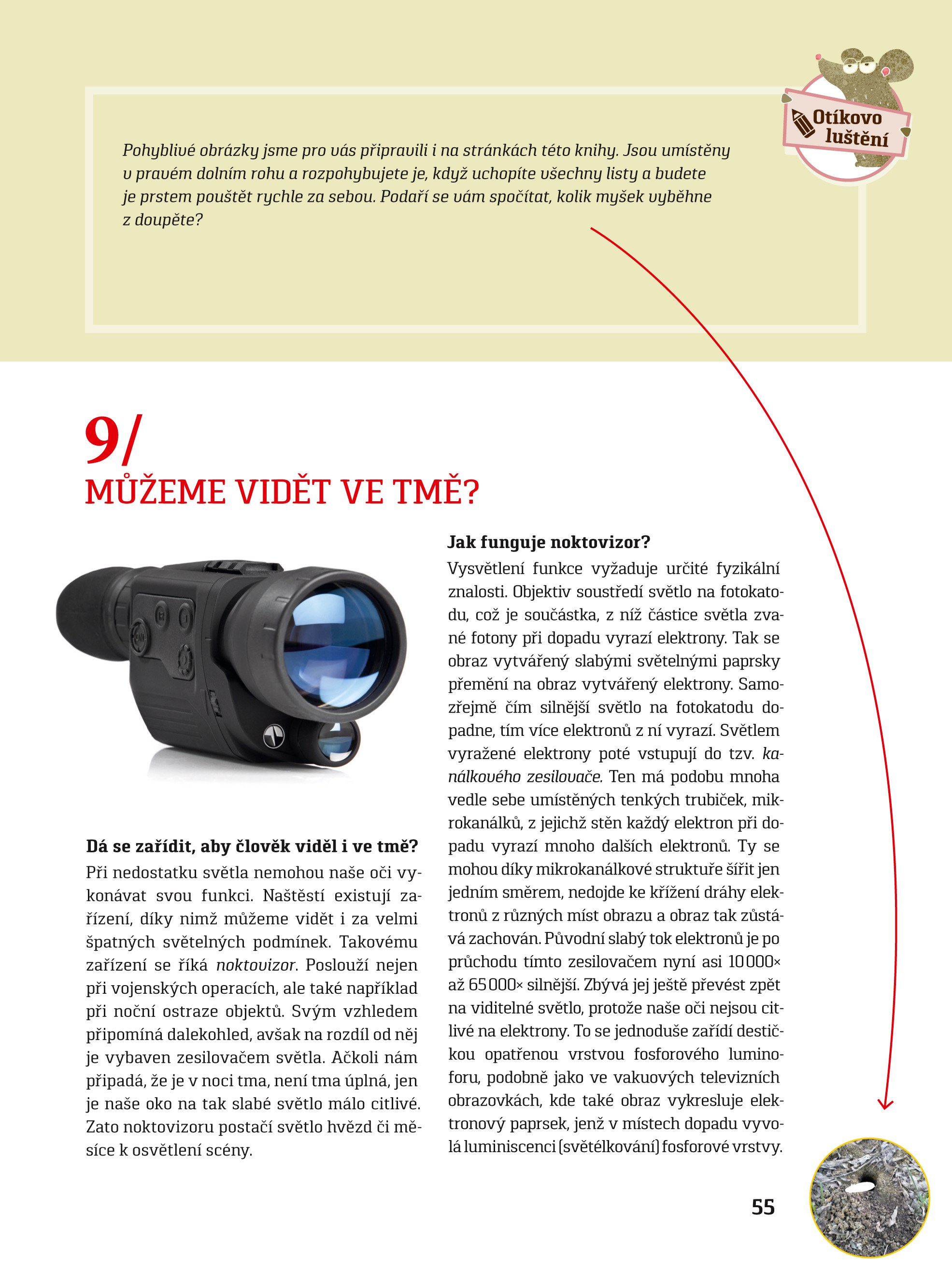 Výklad je podaný oblíbenou a čtivou formou všetečných otázek a odpovědí. A jak je pro edici „Hravá věda“ typické, je doprovázen hravými experimenty, při nichž své smysly vyzkoušíte a možná i ošálíte a které vám pomohou vše pochopit názorně a v souvislostech. Své mozkové závity procvičíte také při zábavném luštění. Vaším průvodcem bude myšák Otík, který pro vás má kromě úkolů připraveny i „kouzelné brýle“, jež vám samy ukážou hledanou informaci.